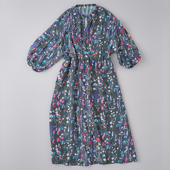 真夏の夜の庭のタックスリーブワンピース