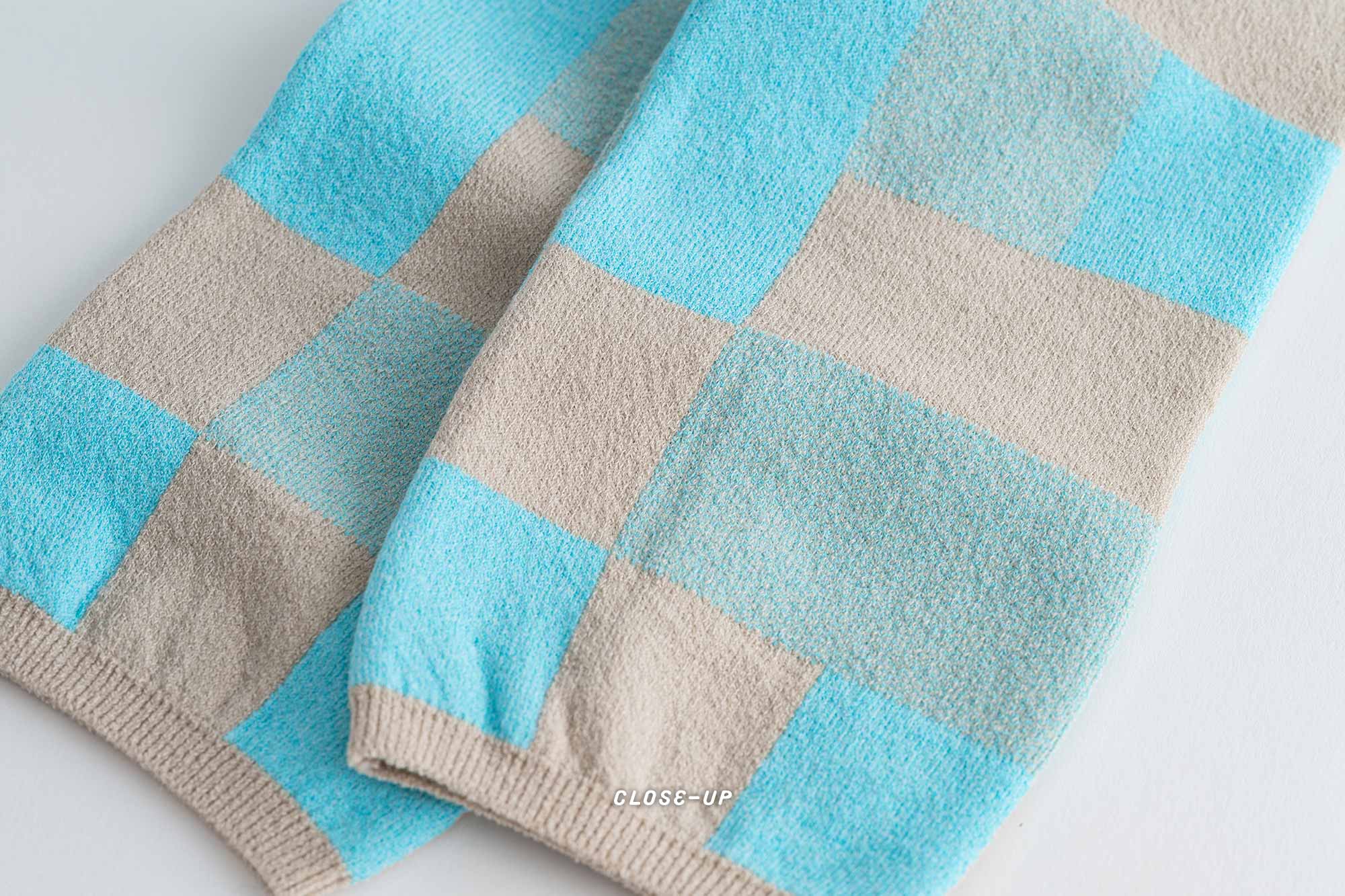 リズミカルな市松模様のレッグウォーマーをつくりました。