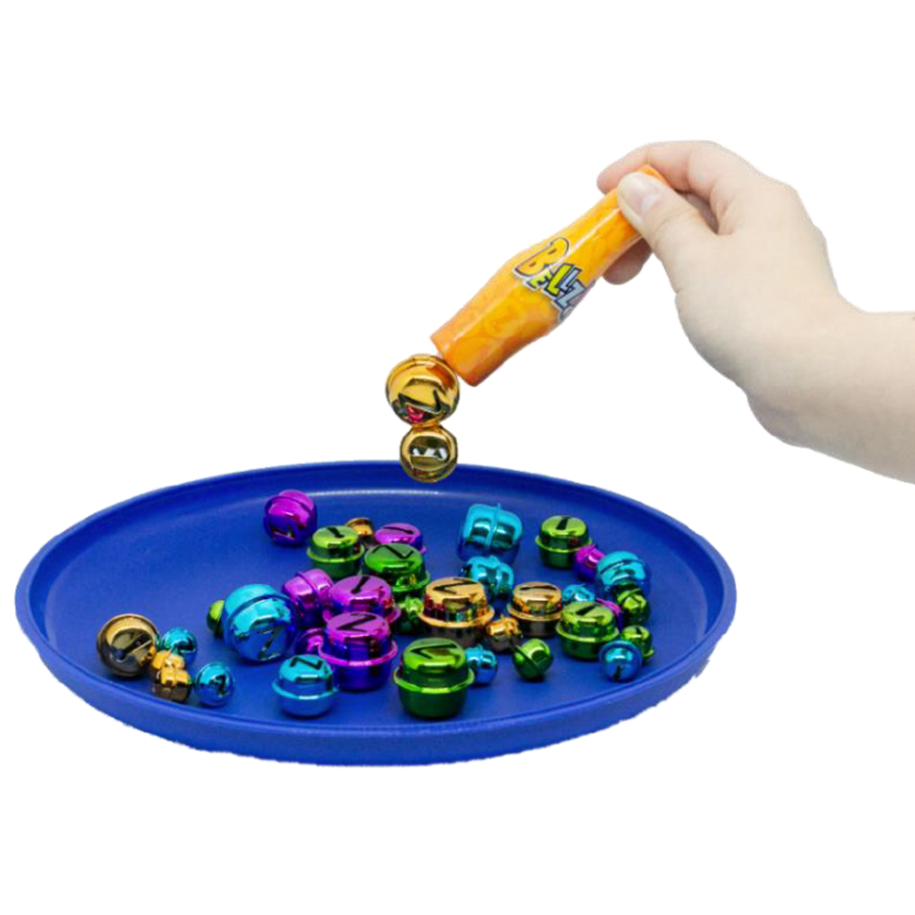 内容物:携帯用ケース 1個, 4色の鈴 各10個, 磁石の棒 1本, 説明書 1部