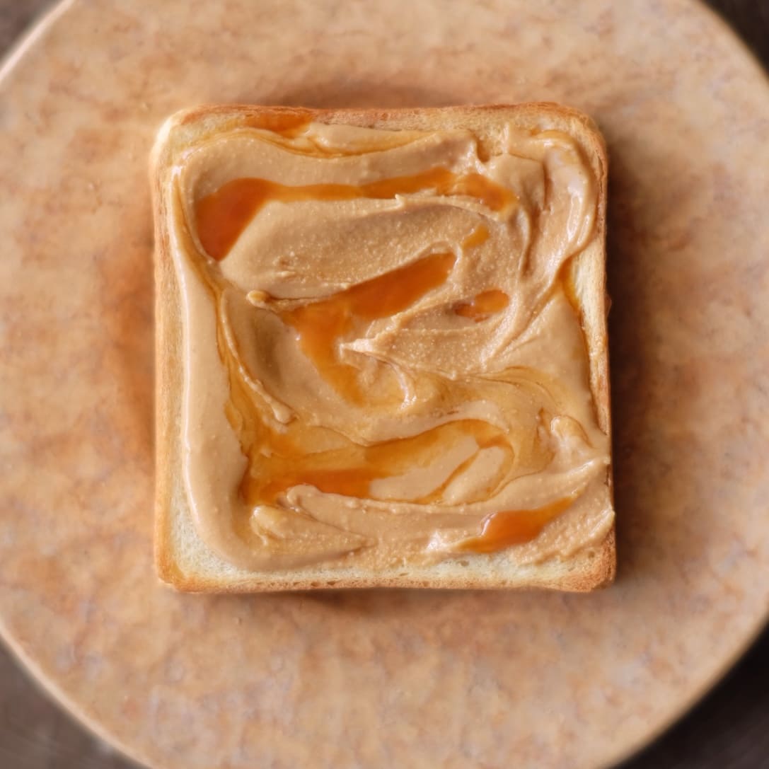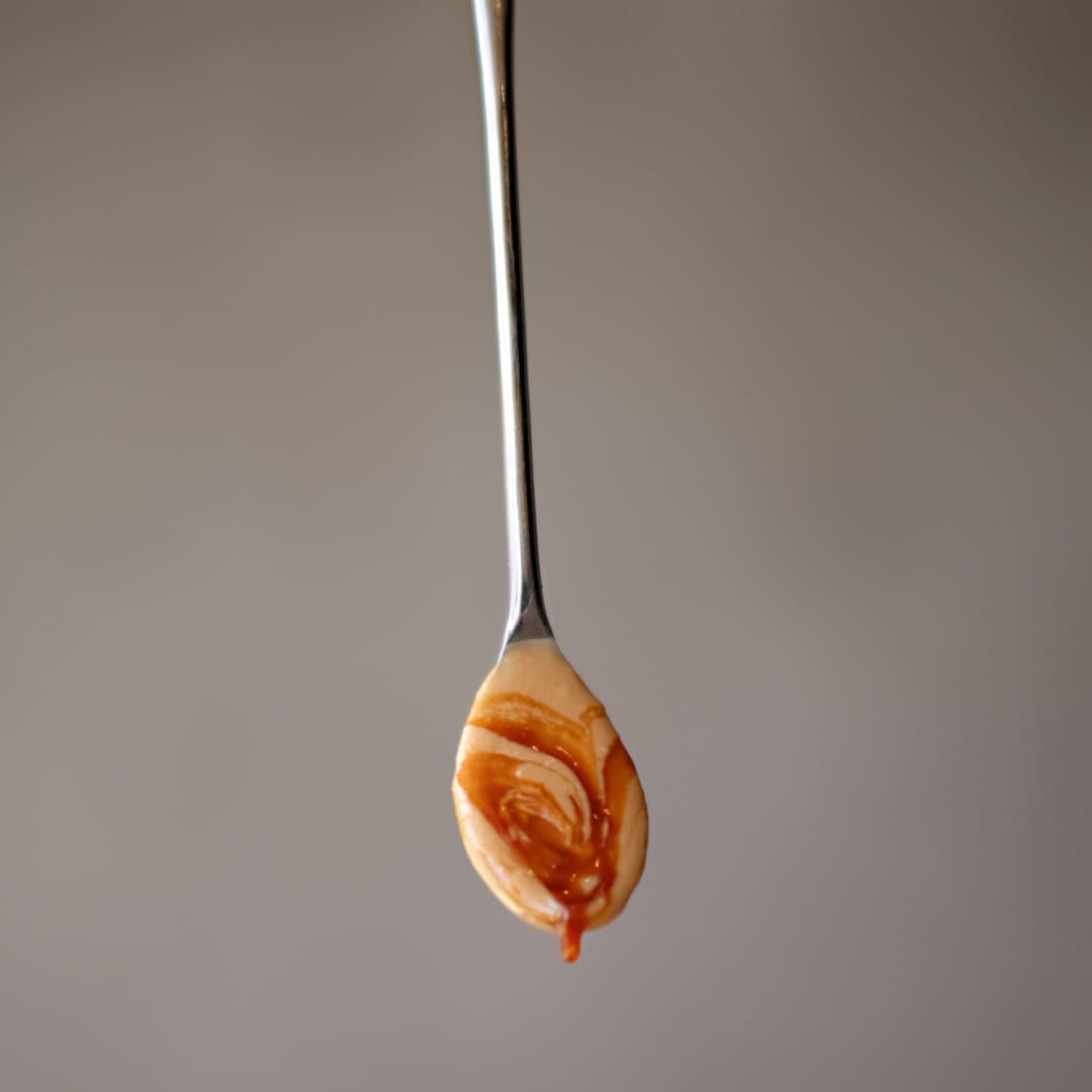 カラメルが描く美しいマーブル模様が、いつものピーナッツバターとは