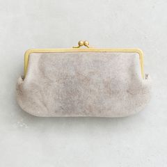 クーズー革と真鍮製の口金を組み合わせてつくった
