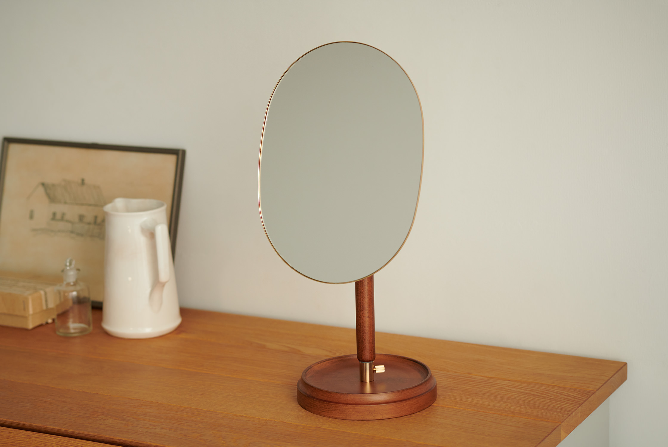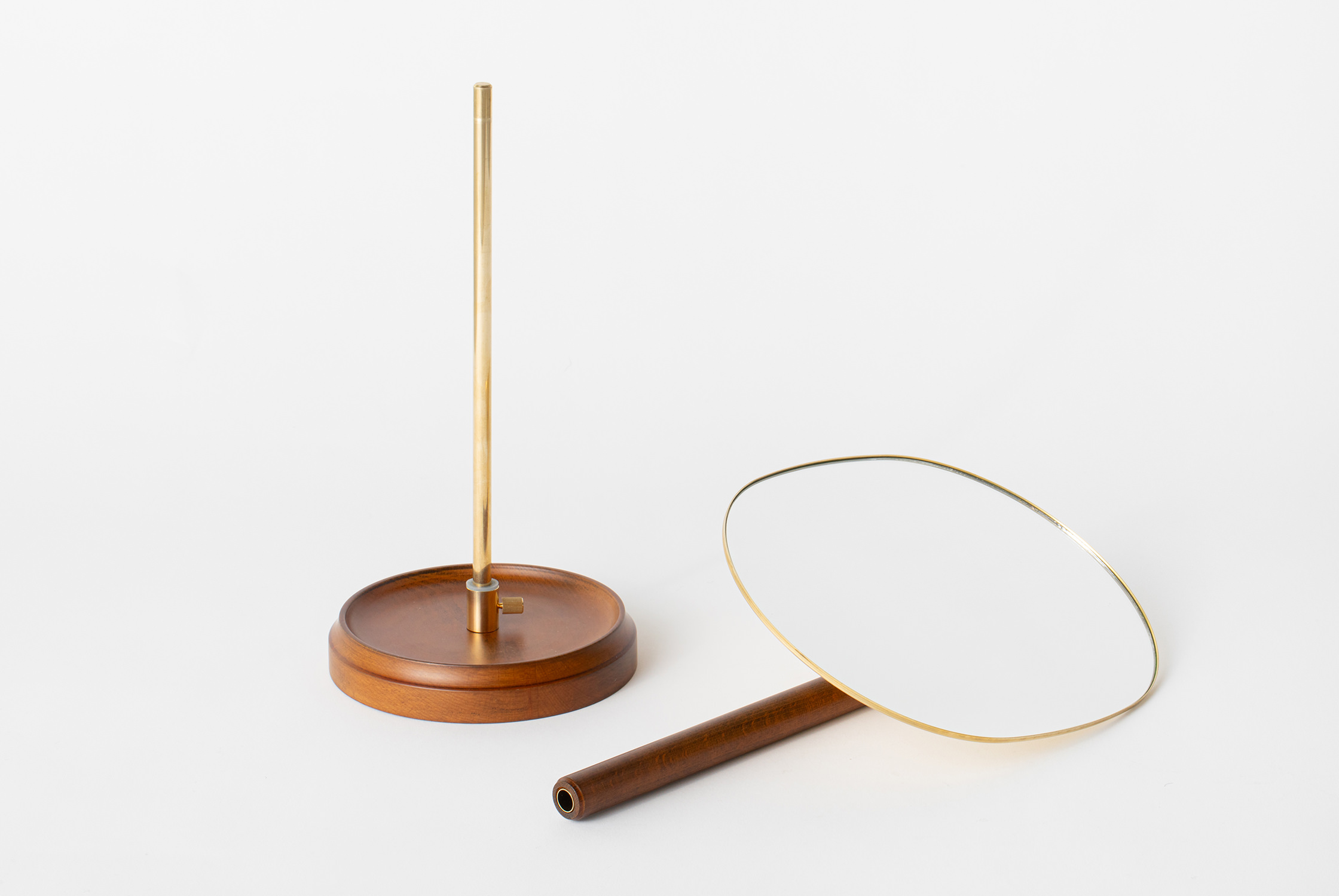 鏡面のついたパーツは取り外せるようになっています。手鏡として使用する際には、支柱の先についた透明なキャップを外してから、そっと引き上げてください。