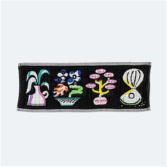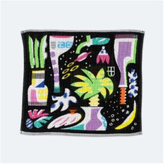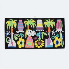 「貝殻に耳を寄せる少女」をテーマにしたタオル。