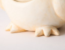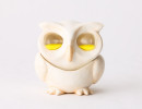 石膏粘土でつくられた、 楽しく飾って楽しく使える砂時計。 首を横に倒すと、 ふくろうの目の中の砂が落ち、 時をはかるという作品です。
