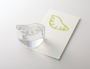 ガラスでできたはんこ。 はんこの柄は、 一点、一点、すべて異なります。 雪の結晶、街の風景、水玉模様など、 作者が思いつくままに、 かわいいと思う柄や、 きれいだと思う柄を掘っています。