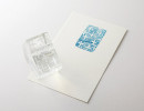 ガラスでできたはんこ。 はんこの柄は、 一点、一点、すべて異なります。 雪の結晶、街の風景、水玉模様など、 作者が思いつくままに、 かわいいと思う柄や、 きれいだと思う柄を掘っています。