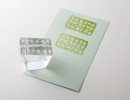 ガラスでできたはんこ。 はんこの柄は、 一点、一点、すべて異なります。 雪の結晶、街の風景、水玉模様など、 作者が思いつくままに、 かわいいと思う柄や、 きれいだと思う柄を掘っています。