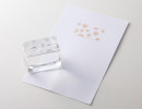 ガラスでできたはんこ。 はんこの柄は、 一点、一点、すべて異なります。 雪の結晶、街の風景、水玉模様など、 作者が思いつくままに、 かわいいと思う柄や、 きれいだと思う柄を掘っています。