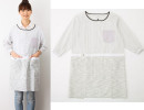 作者のコメント: オーソドックスなワイシャツをベースに、 エプロンには、インドネシアの手織りの布をあわせました。 後ろのベルトは、シャツのカフスです。 すごい単純なんですけど、みなさん、 気づいたときに、おぉ! っておっしゃいますね(笑)。
