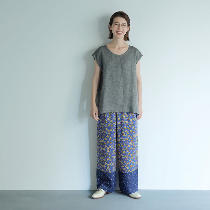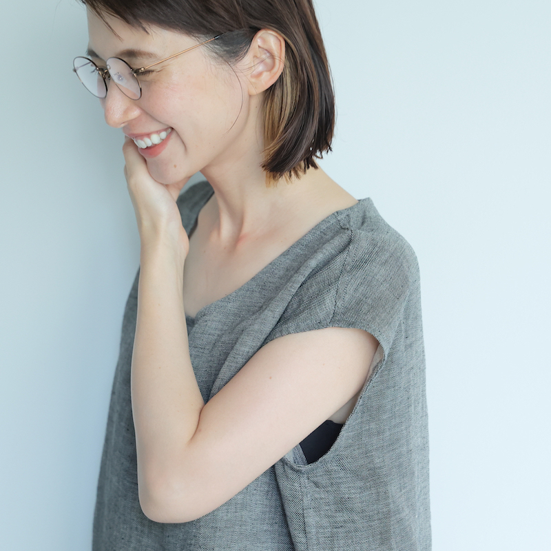 ・麻の特徴でもある、ネップがあります。また、素材の特性上、強く引っ張ると縫い目が開くことがありますのでご注意ください。