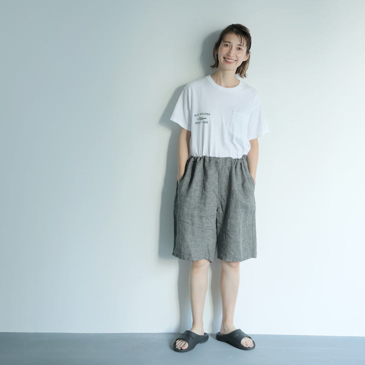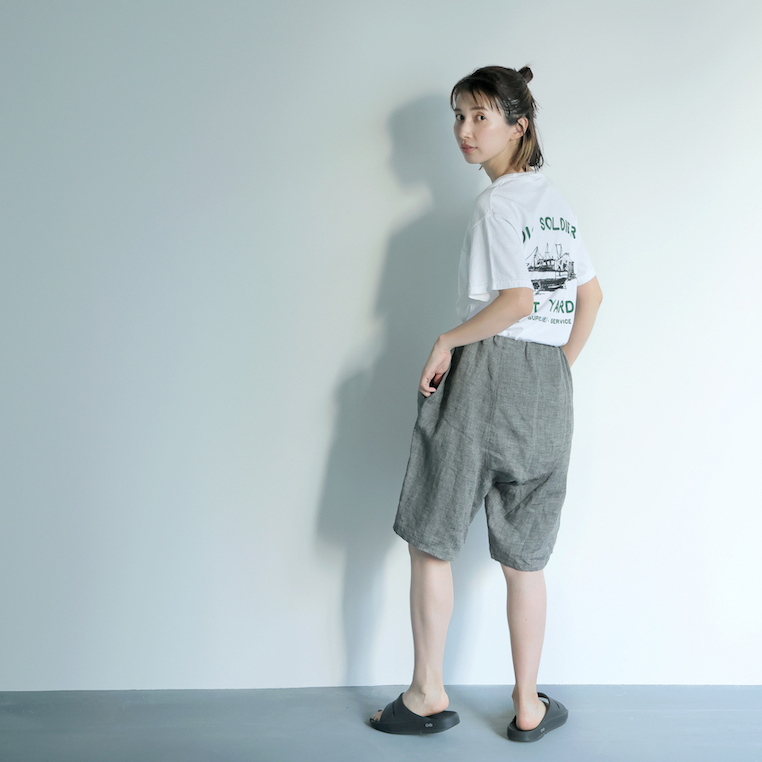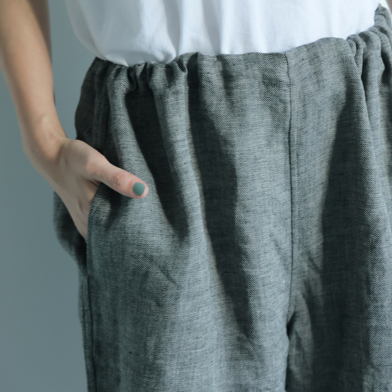 ・麻の特徴でもある、ネップがあります。また、素材の特性上、強く引っ張ると縫い目が開くことがありますのでご注意ください。