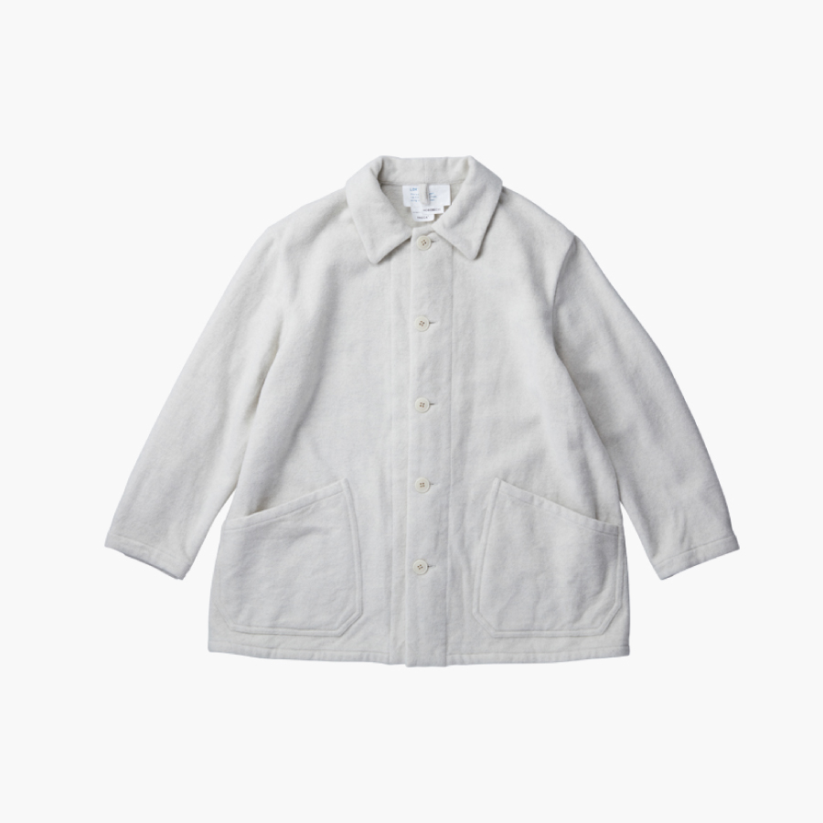 超長綿を使った「チノクロス」を使用しています。チノクロスは、じょうぶでカジュアルに使えるコットン生地ですが、あえて上質な、繊維の長い超長綿を用い、また通常よりも撚りを少なくした糸にすることで、チノクロスならではのじょうぶさは保ちつつ、やわらかく、なめらかな風合いに仕上げています。さらに微起毛しているので、上品な光沢感がうまれ、肌ざわりよく、あたたかに着ていただけます。