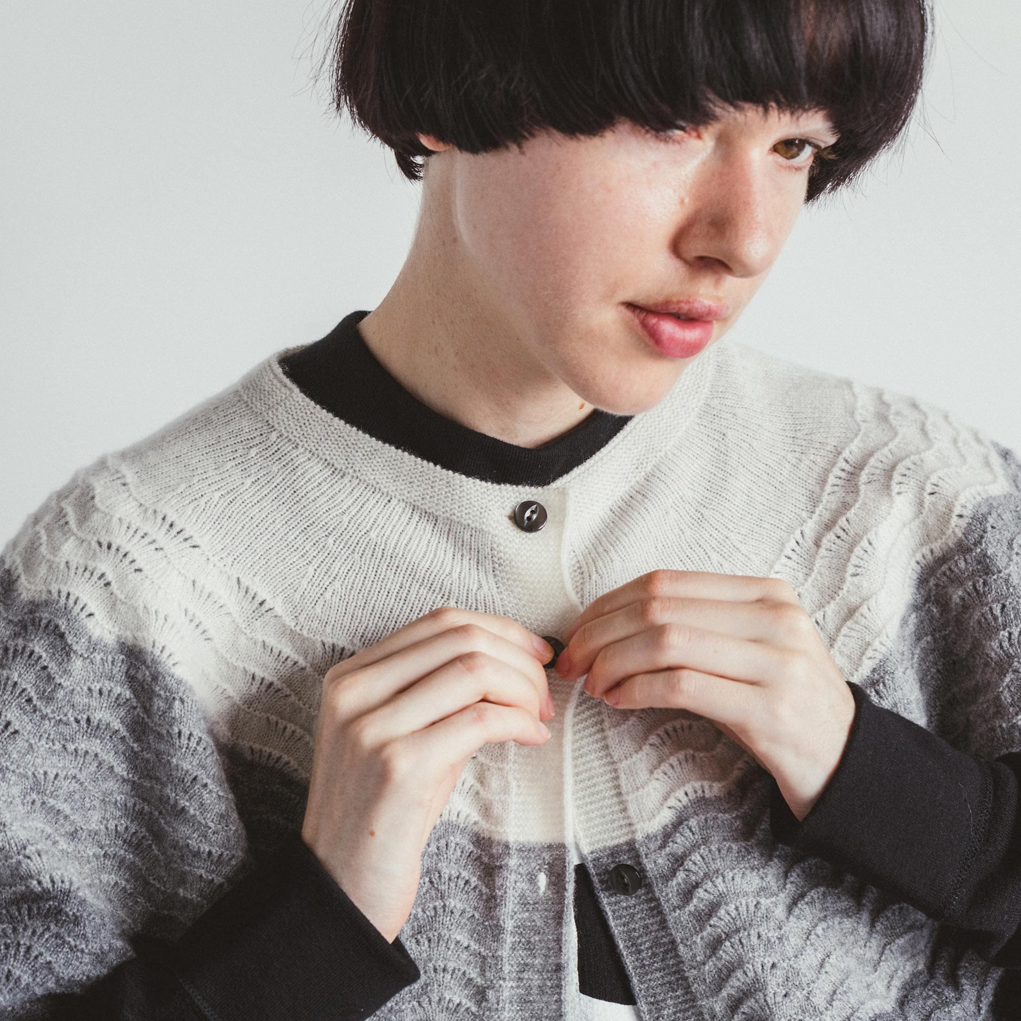 ・生地の性質上、摩擦などにより生地の両面に毛羽立ちや毛玉ができることがあります。毛玉を防ぐためには、連続での着用を避け、着用後にはブラッシングすることをおすすめします。毛玉ができた場合は引っ張ってとろうとせずにはさみでそっと取り除いてください。