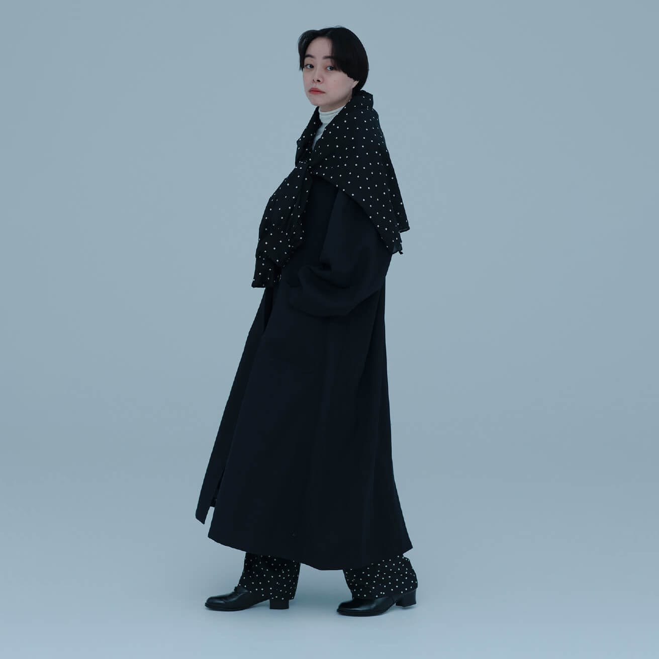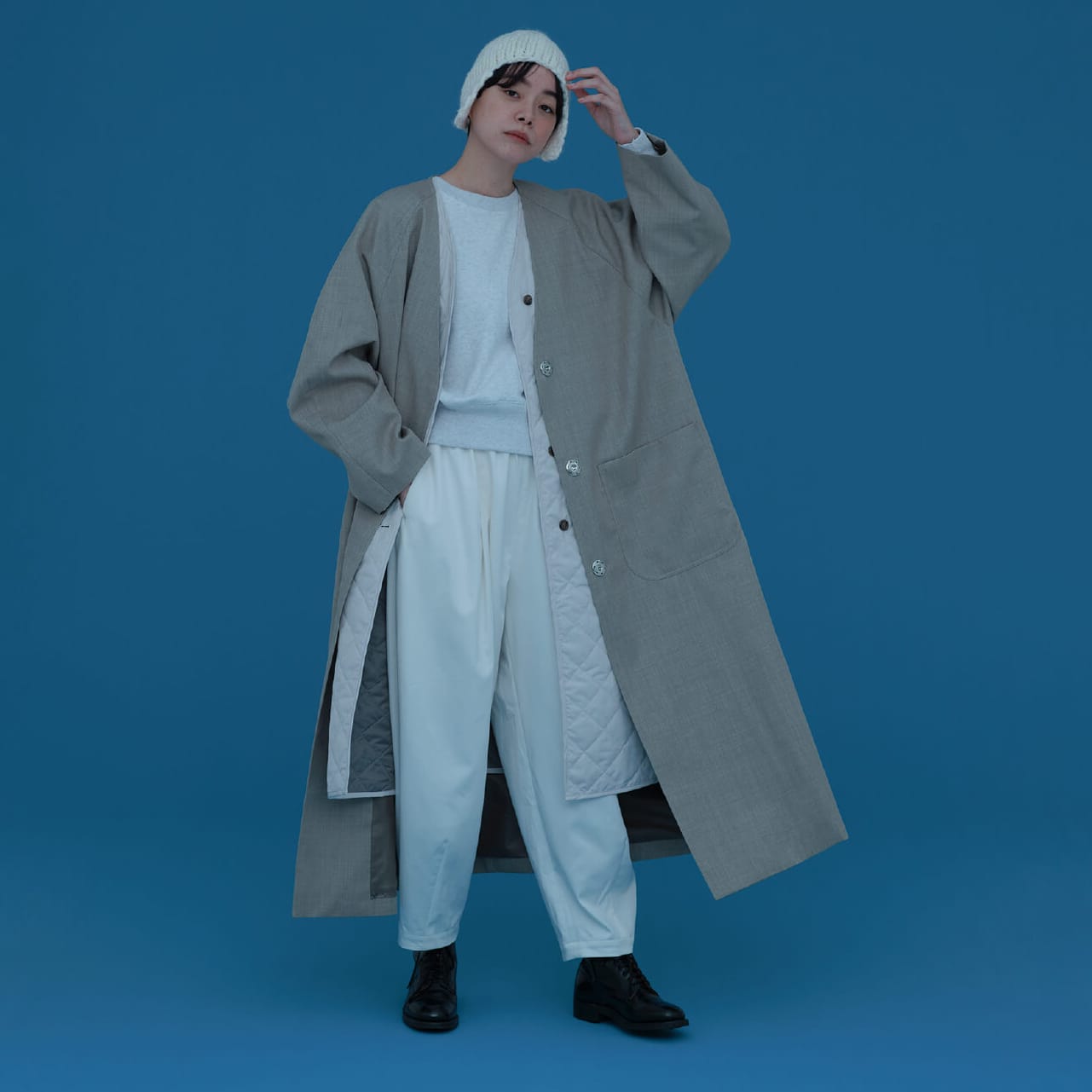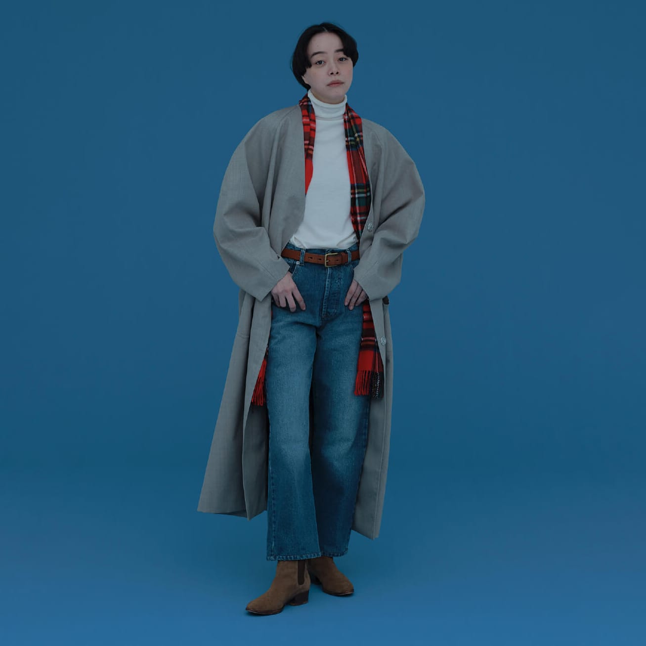 揺れるフレアがうつくしいマキシ丈のコートと、