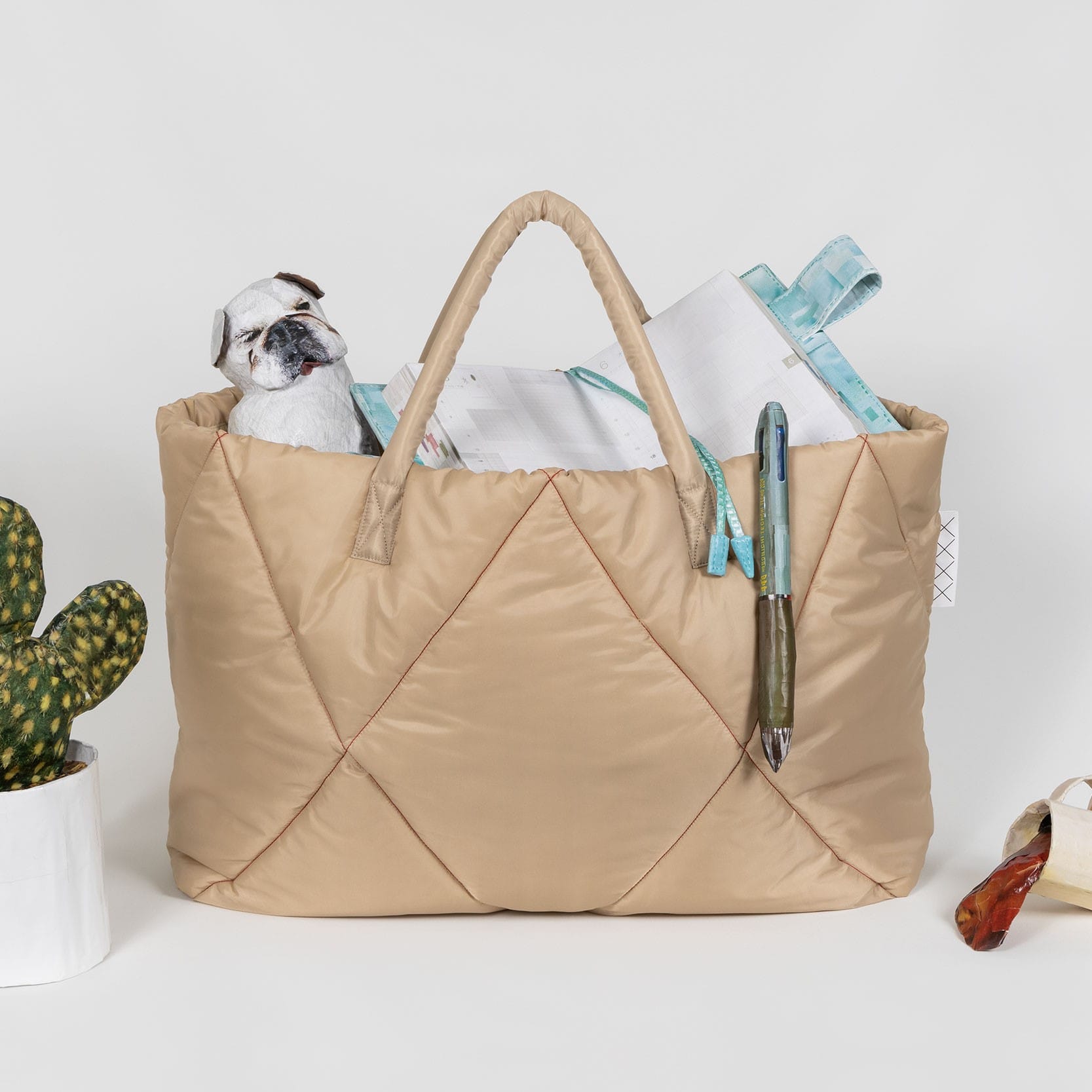 先の尖ったものや極端に重いものを入れると破れてしまう場合があります。極端に重いもの、はさみなどの先の尖ったものを入れたり、荷物をむりに詰め込んだ場合、型くずれしたり、生地が破れてしまう場合があります。
