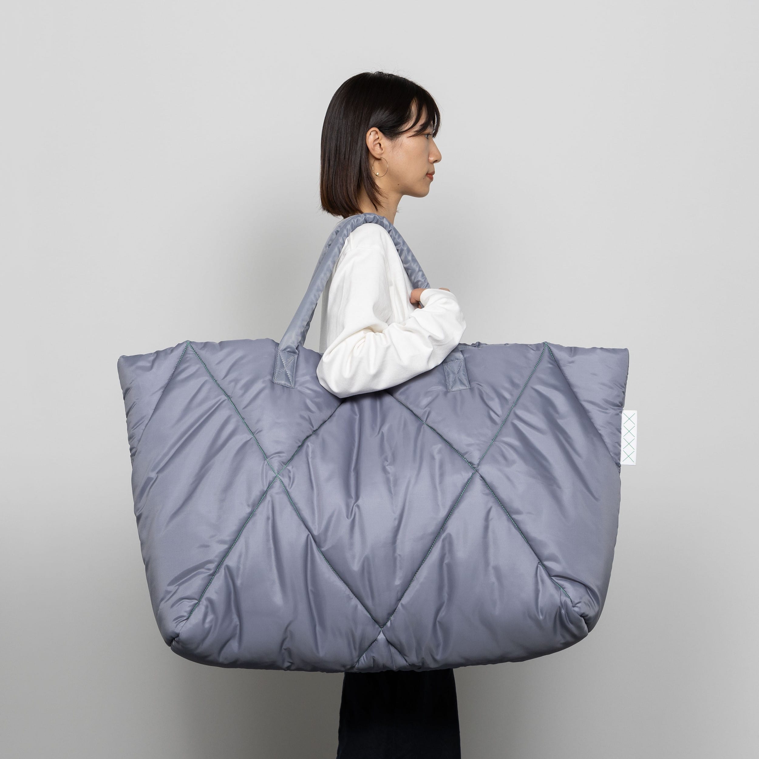 ライトグレーには、グリーンのステッチ。