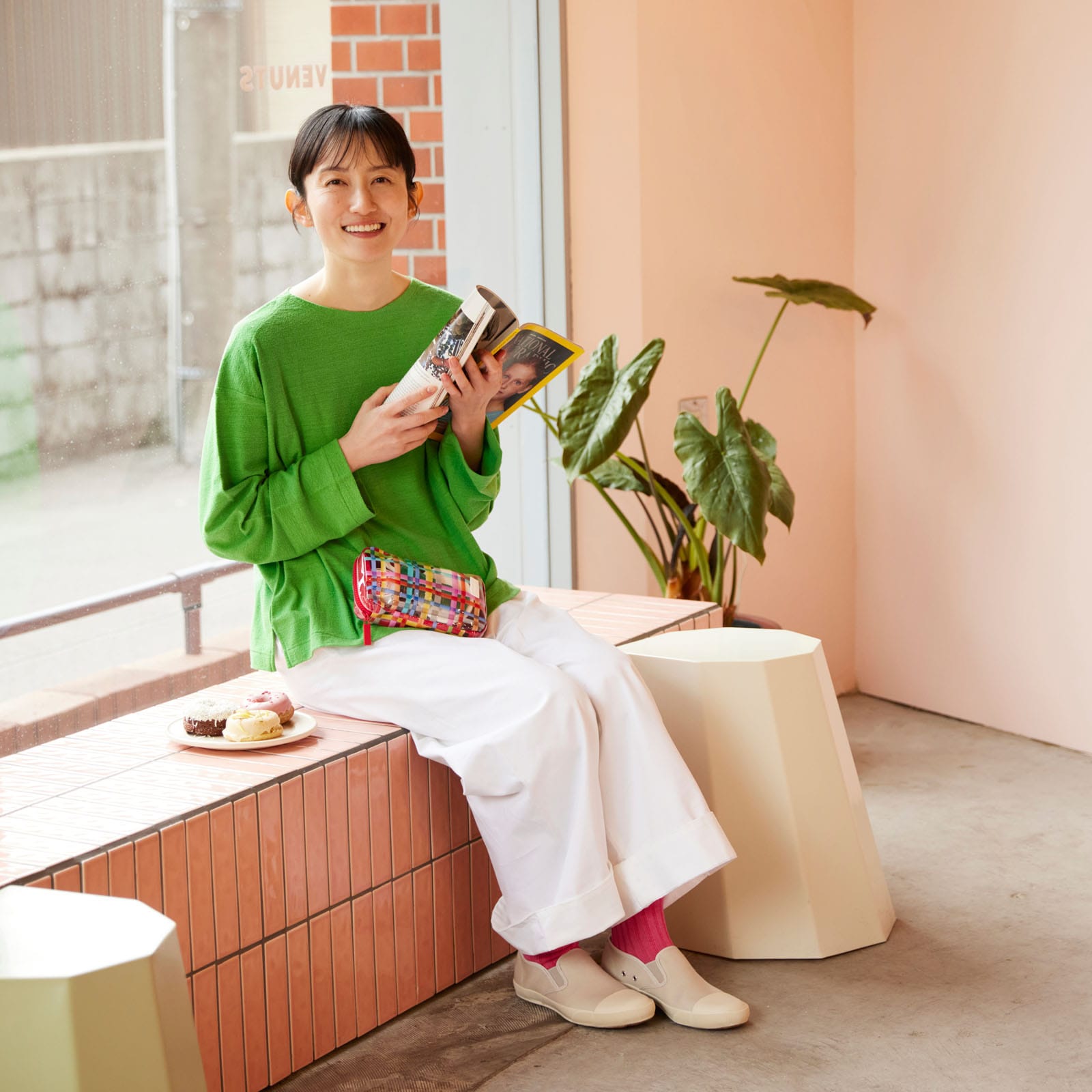明るい色の線が交わるポップな印象で、