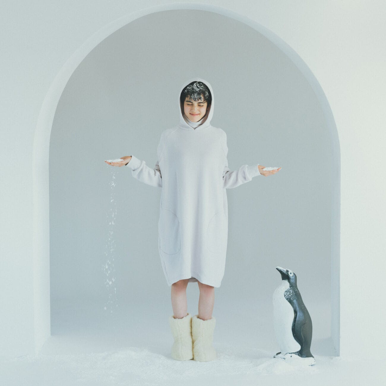 さらにあたたまりたいときはフードをかぶれば