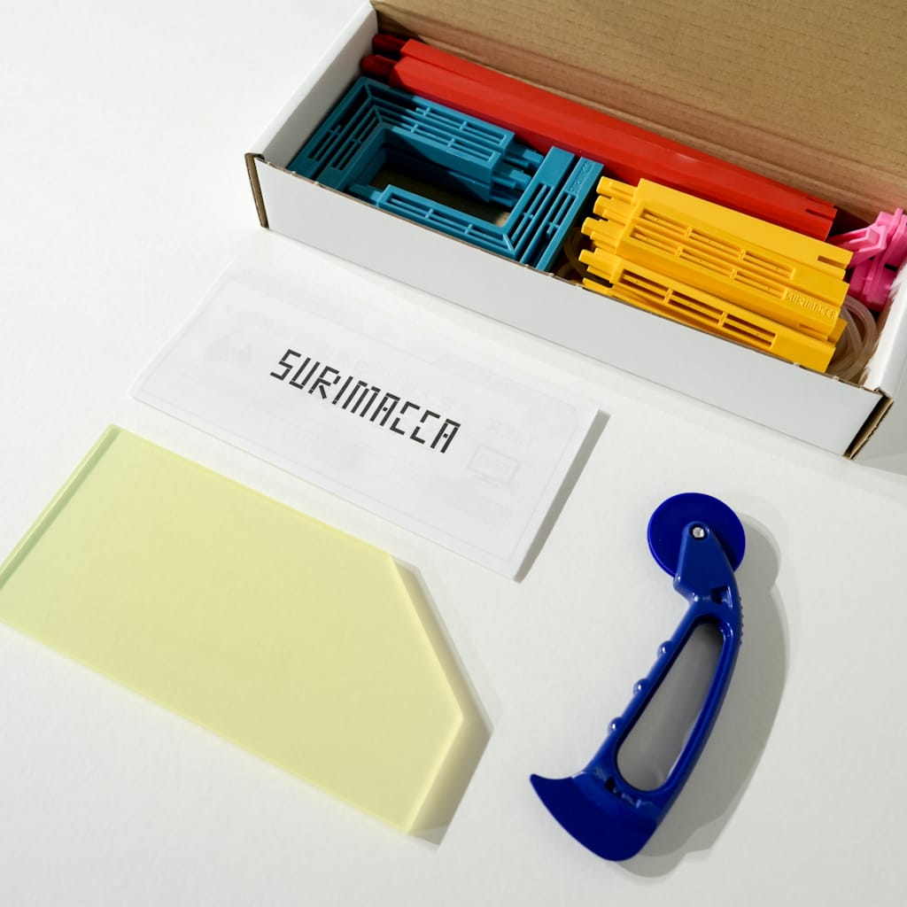 ※SURIMACCAにはコーナーパーツ×4・ショートパーツ×4・ロングパーツ×2・浮かしパーツ・ゴム・ローラー・スキージ・説明書が同梱されています。