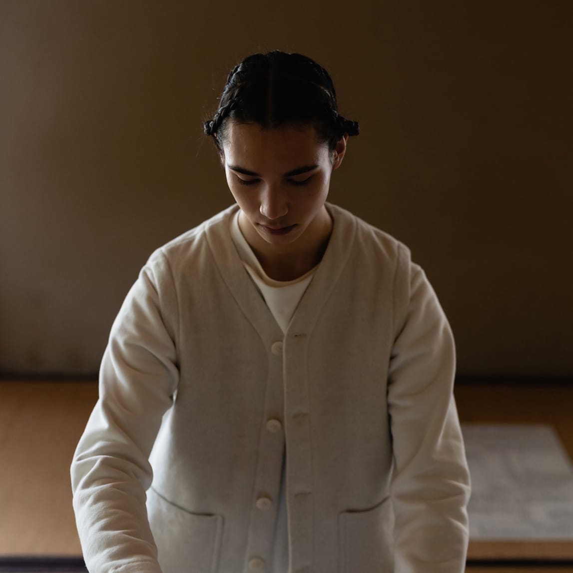 ・コットン100%の、まるでウールのような、毛布に包まれているような気持ちになる生地です。製品洗いをしていない商品のため、はじめのお洗濯で数cm縮む恐れがあります。