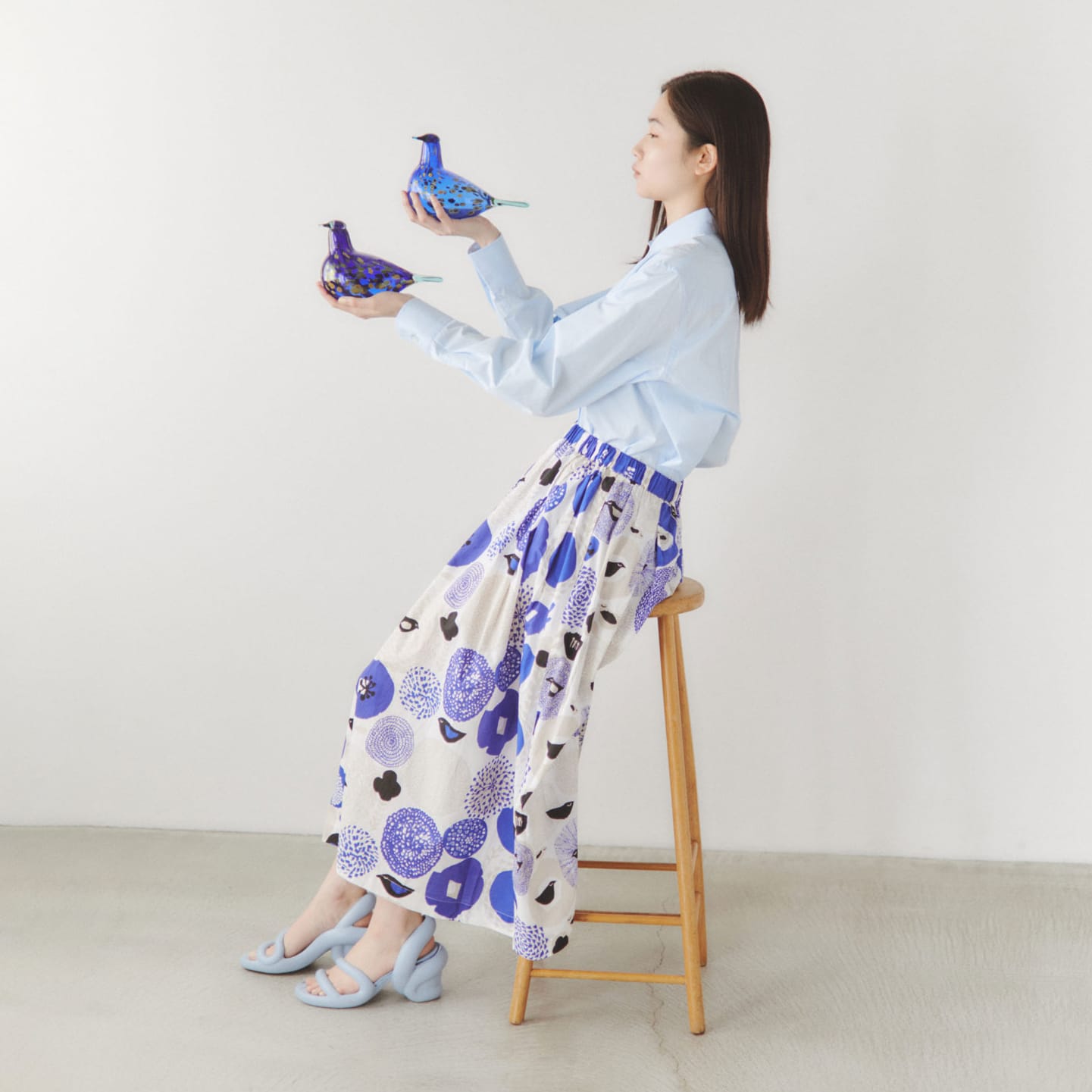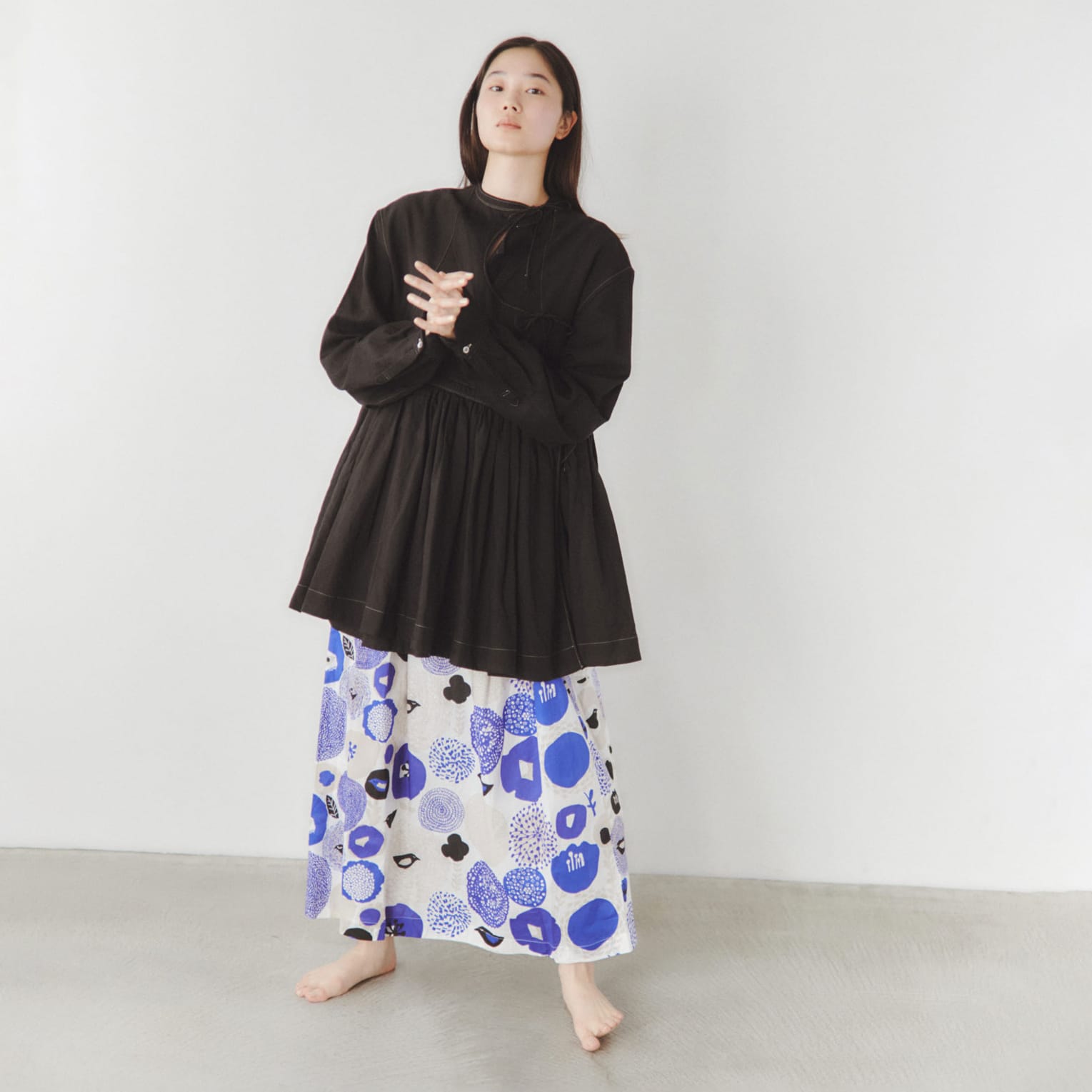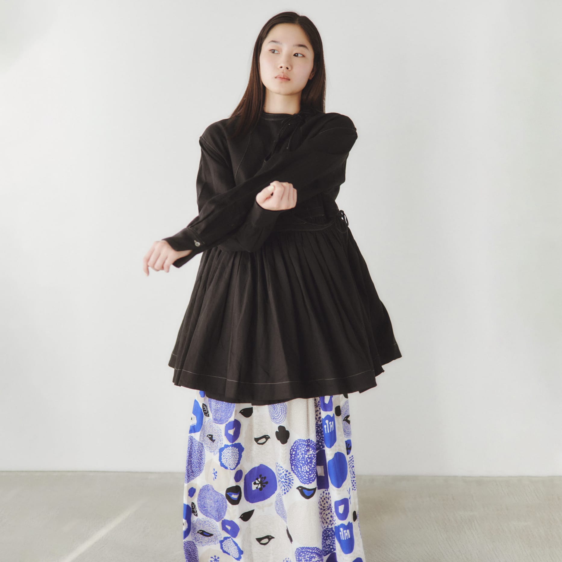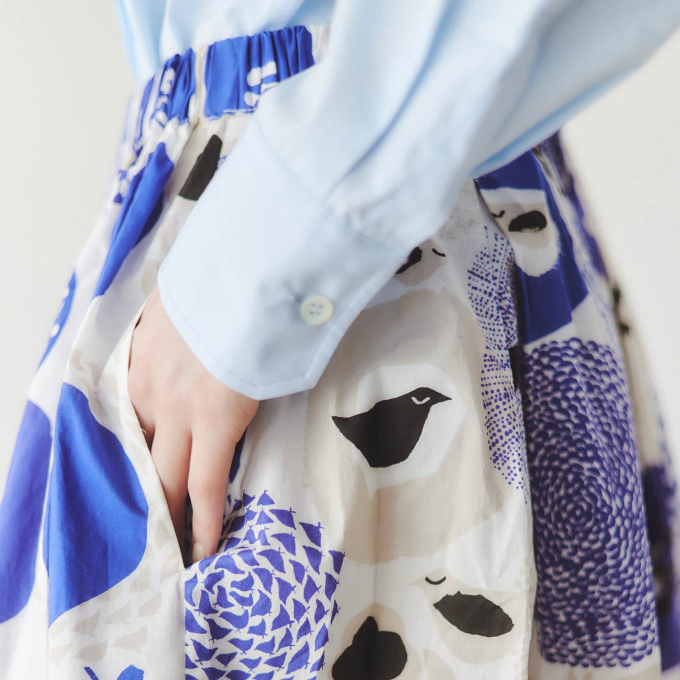 長めの着丈で、柄そのものをまとう感覚のスカート。