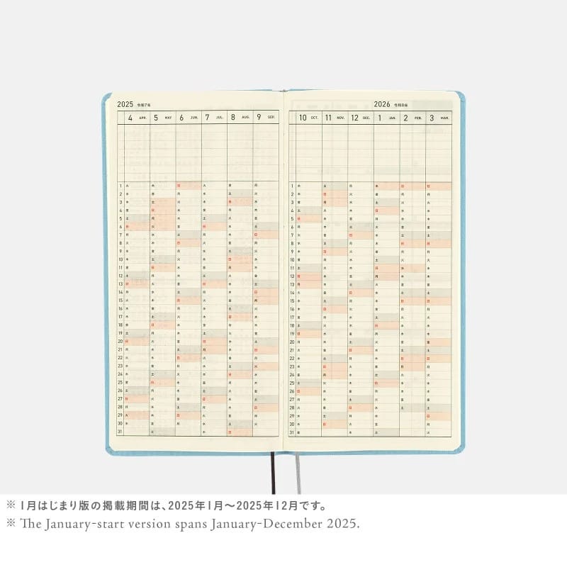 ・表紙の年号の箔押しの文字は、日々お使いいただくうちにはがれることがあります。強くこすらないようご注意ください。
