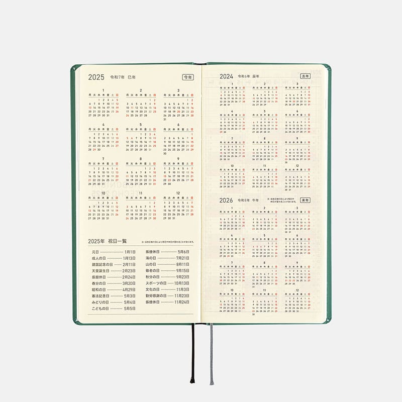 ・表紙の年号の箔押しの文字は、日々お使いいただくうちにはがれることがあります。強くこすらないようご注意ください。