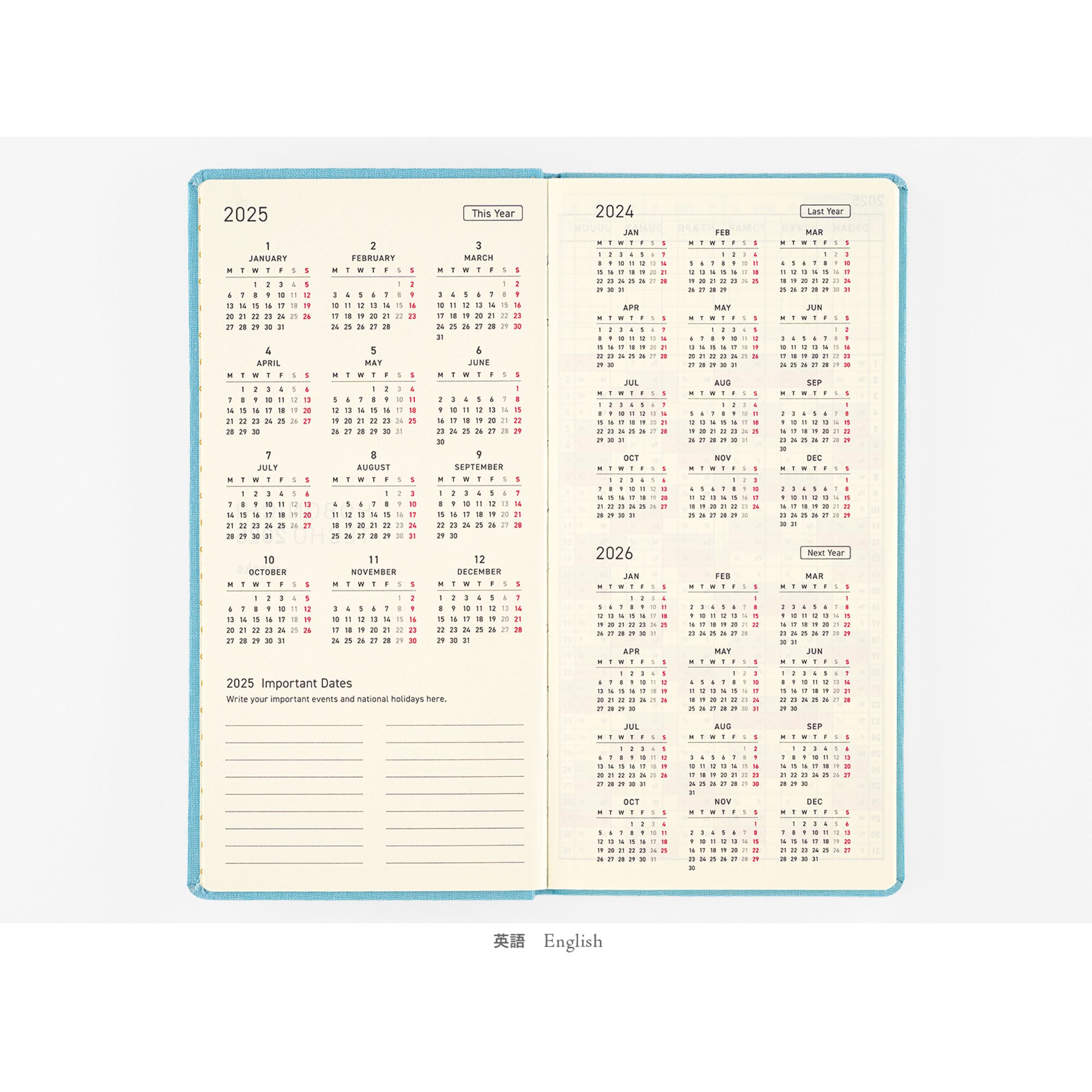 ・表紙の年号の箔押しの文字は、日々お使いいただくうちにはがれることがあります。強くこすらないようご注意ください。