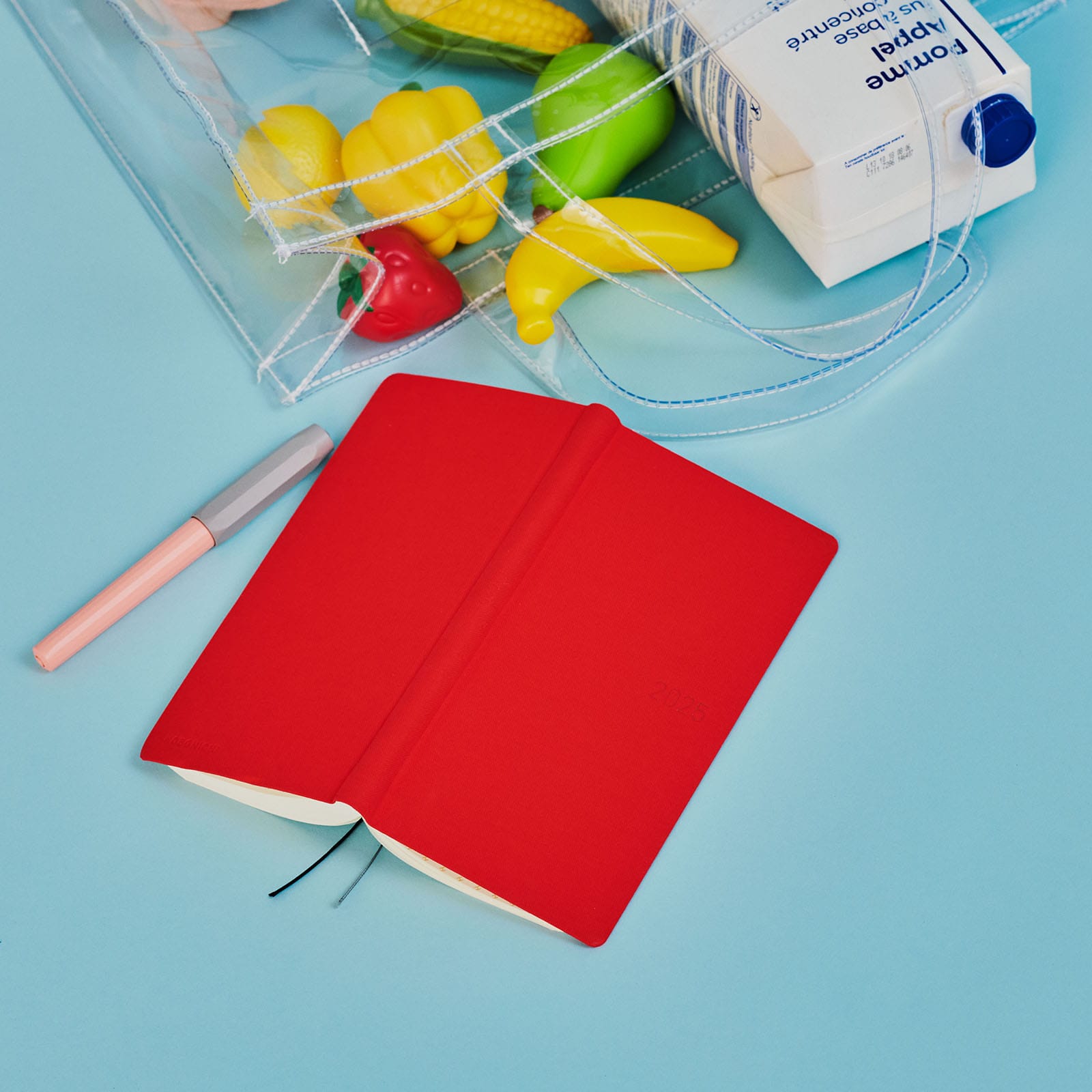 鮮やかな赤い色の手帳です。