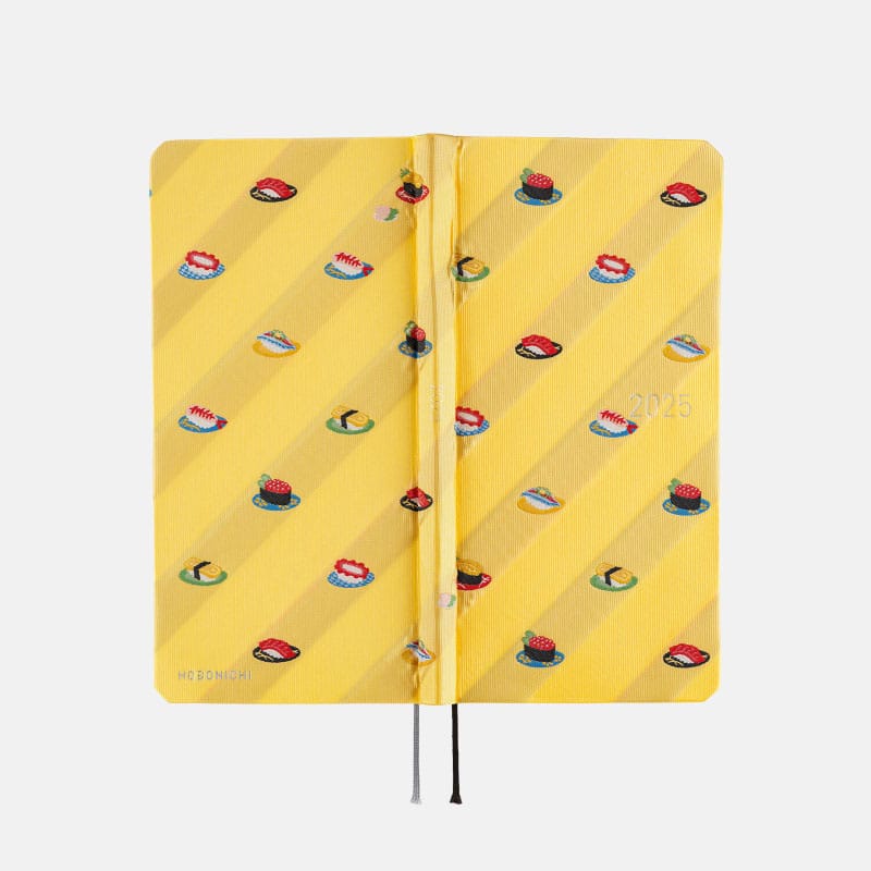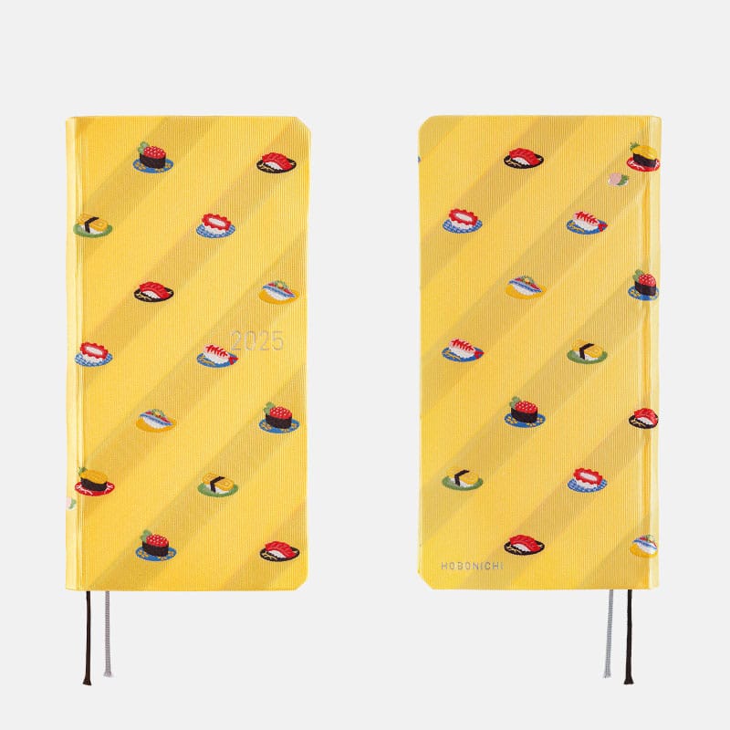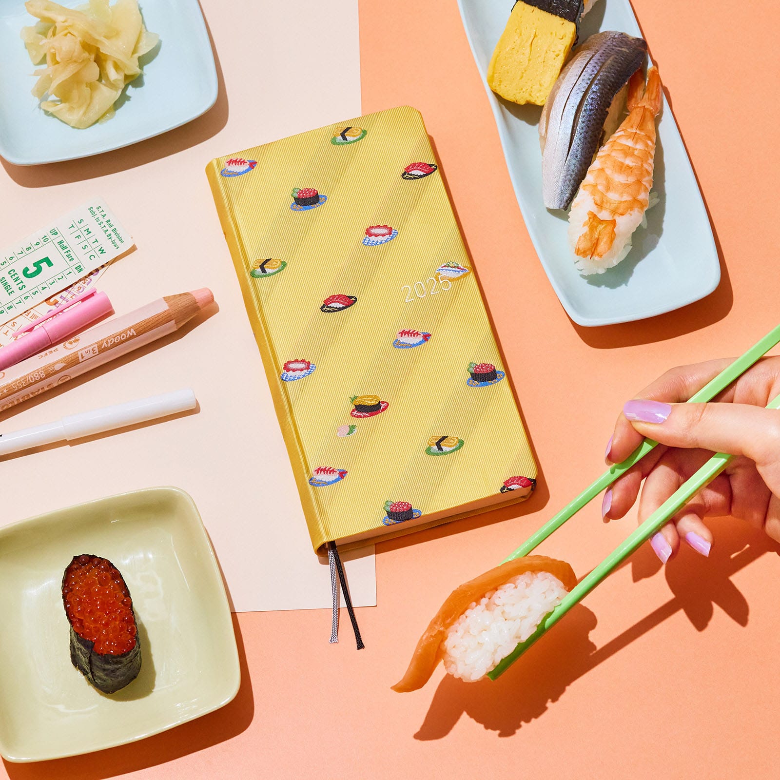 明るいイエローの表紙に並ぶたくさんのお寿司を
