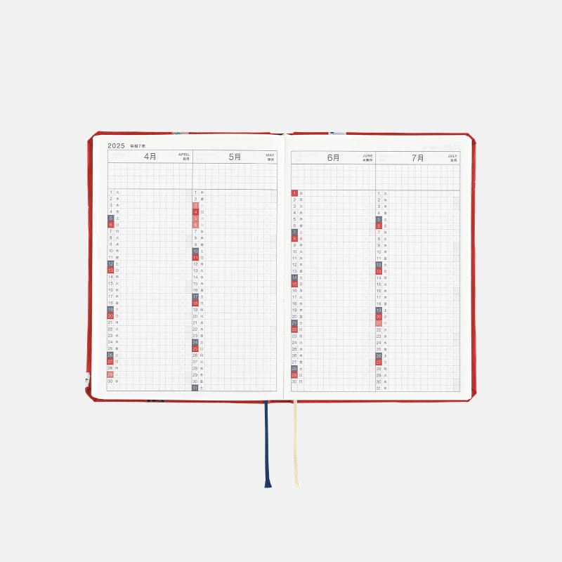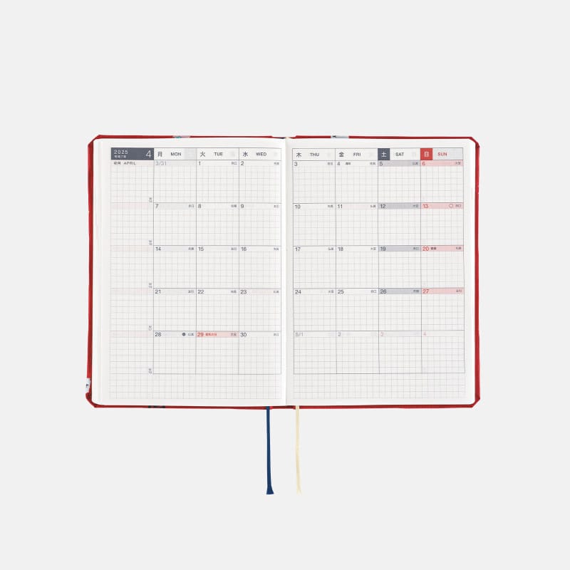 ■記載される内容: 日番号/週番号(月間カレンダーに記載)/旧暦/六曜(大安、仏滅など)(月間カレンダーに記載)/二十四節気(立春、春分、夏至など)、雑節/祝日、記念日など(バレンタインデー、ひなまつり、母の日、父の日など)/月の満ち欠け(1日ページ全ページに記載、月間カレンダーに満月と新月のみ記載)