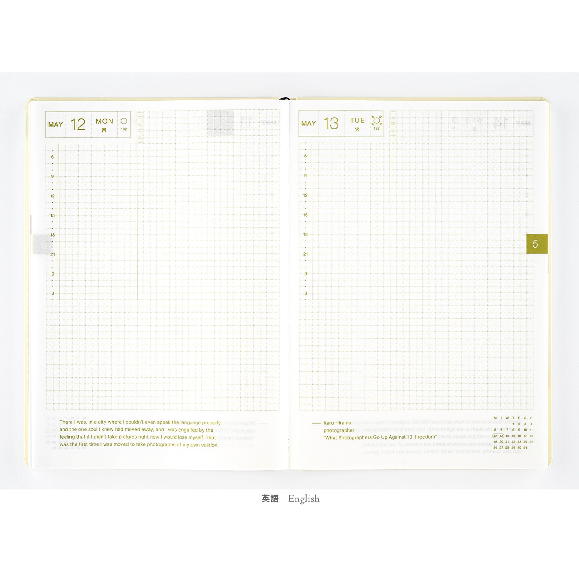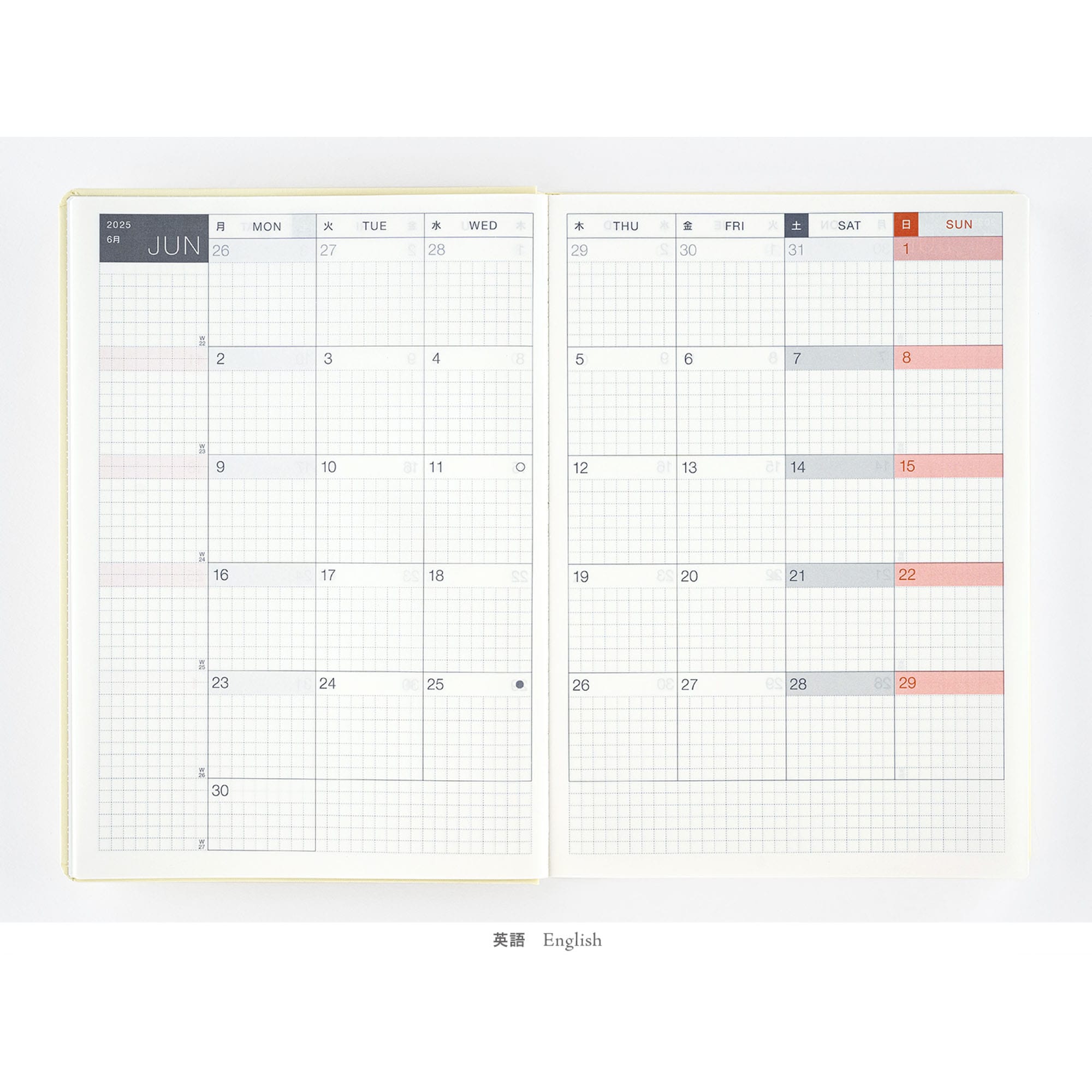 *右ページに「ミニカレンダー」を掲載(月曜はじまり)。