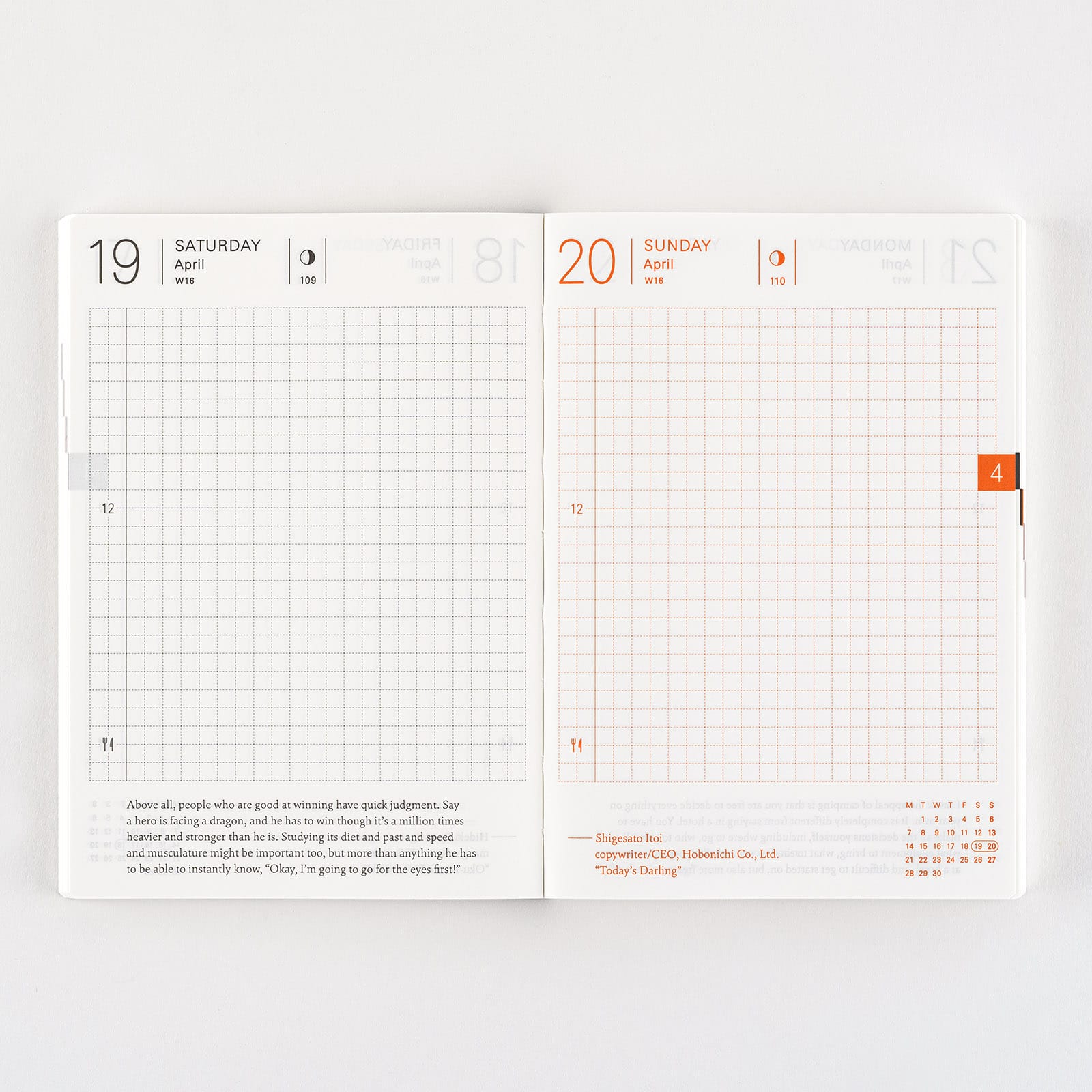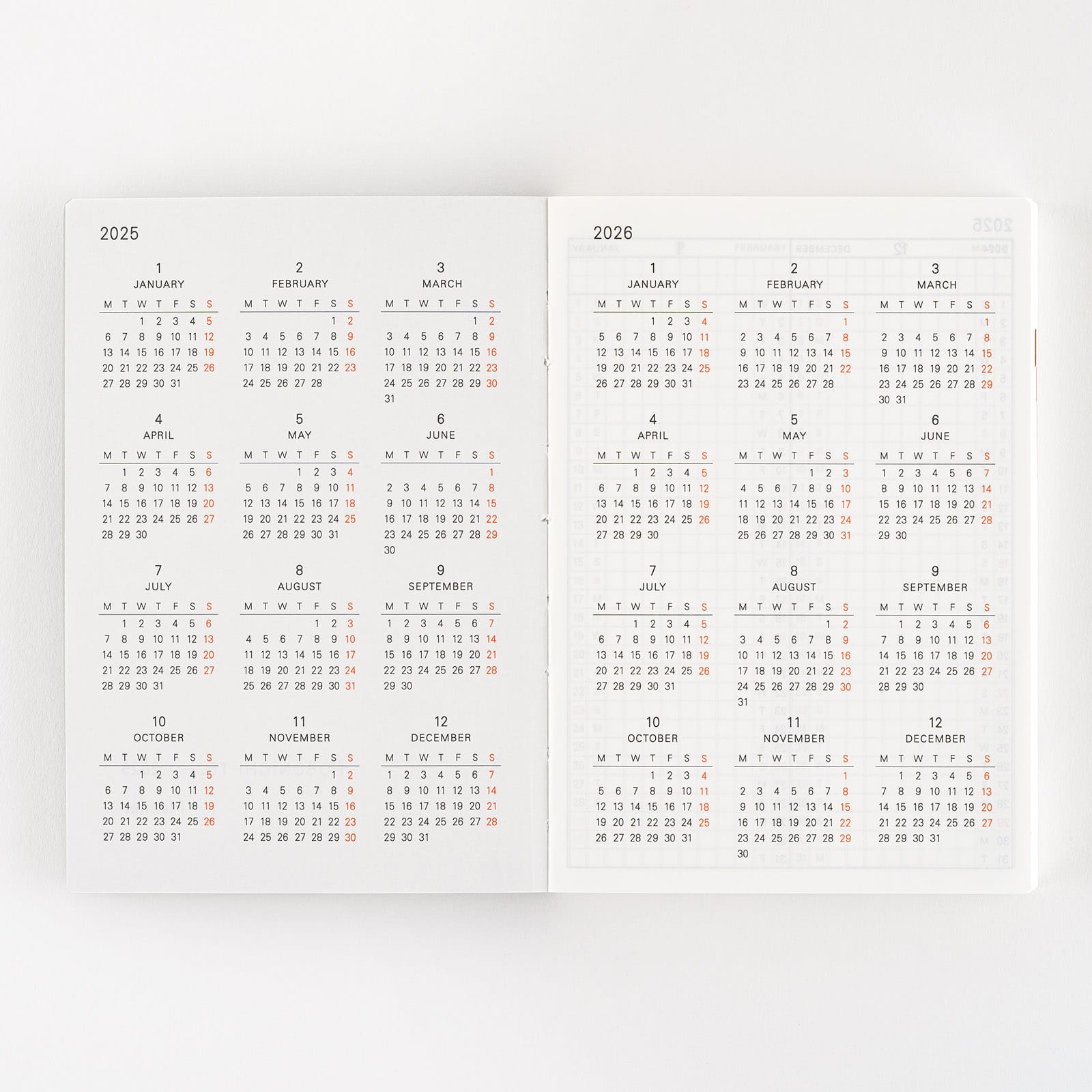 *右ページに「ミニカレンダー」を掲載(月曜はじまり)。