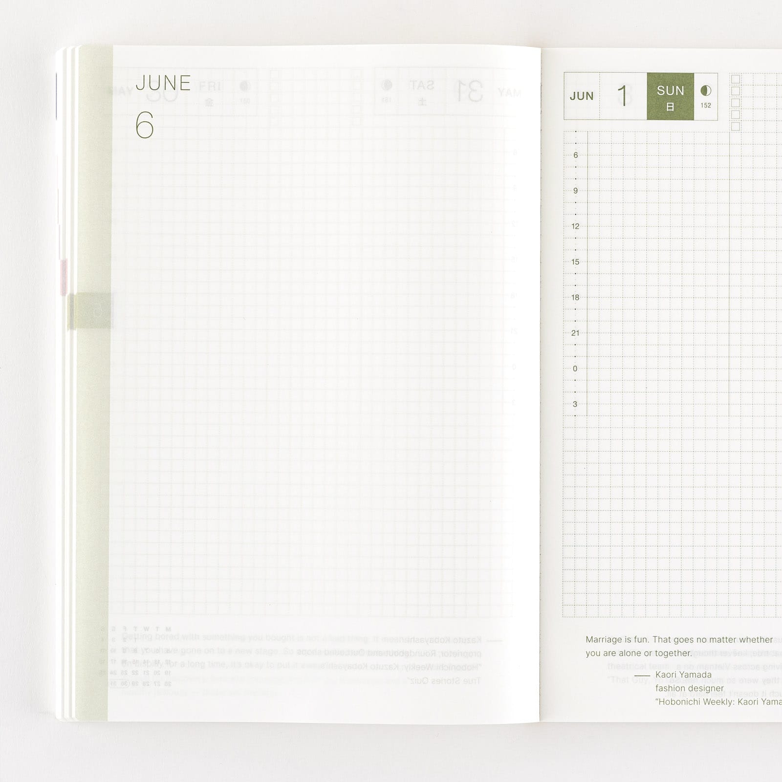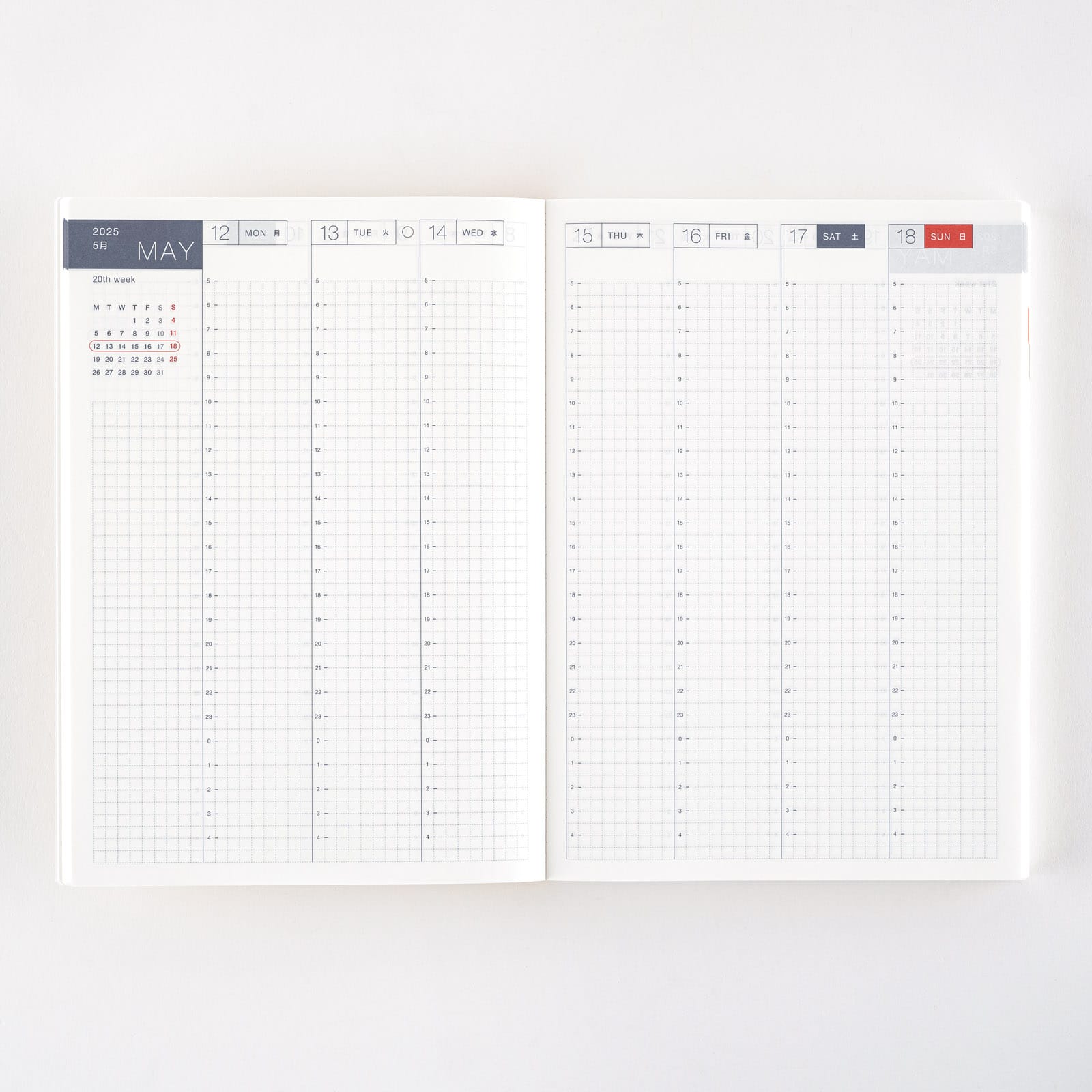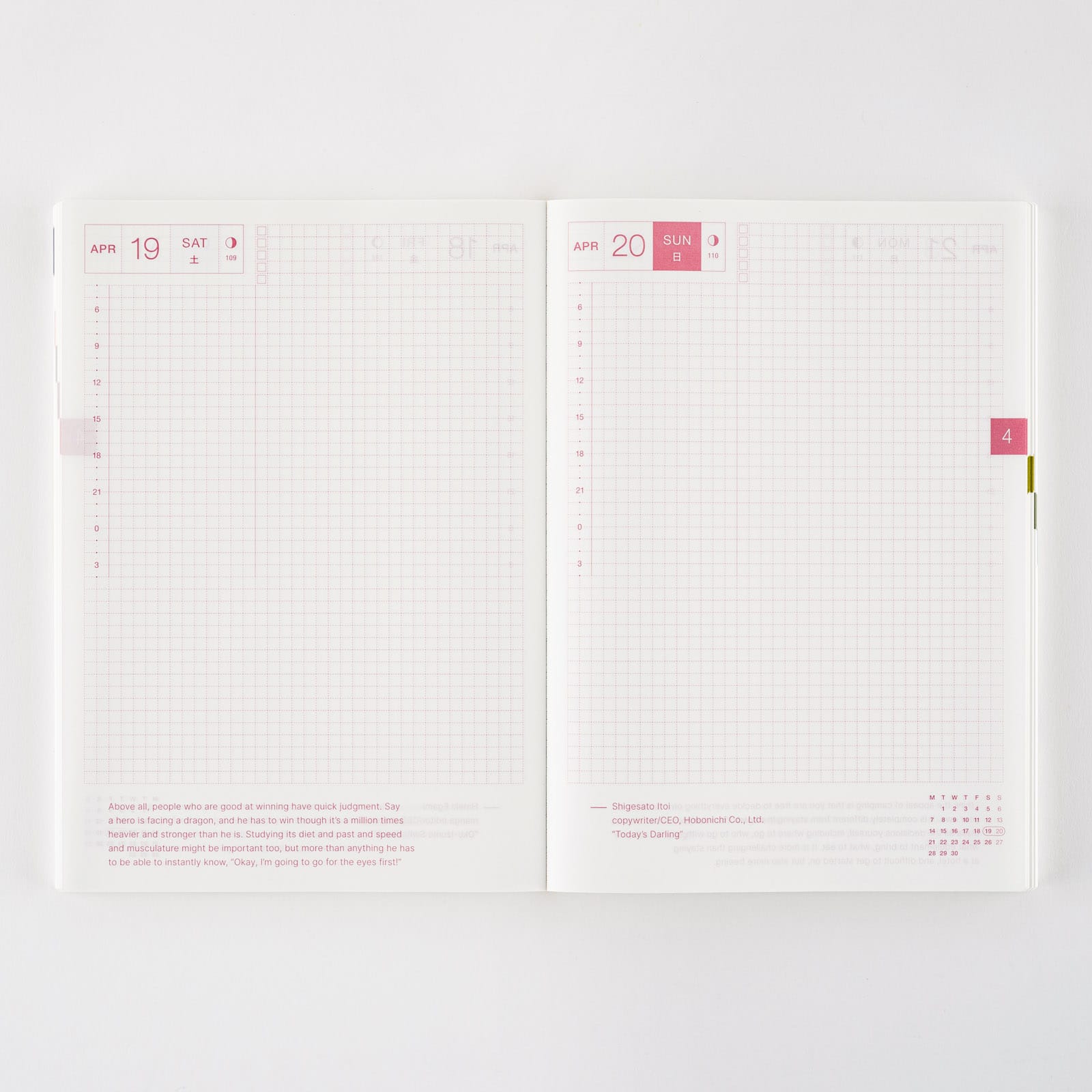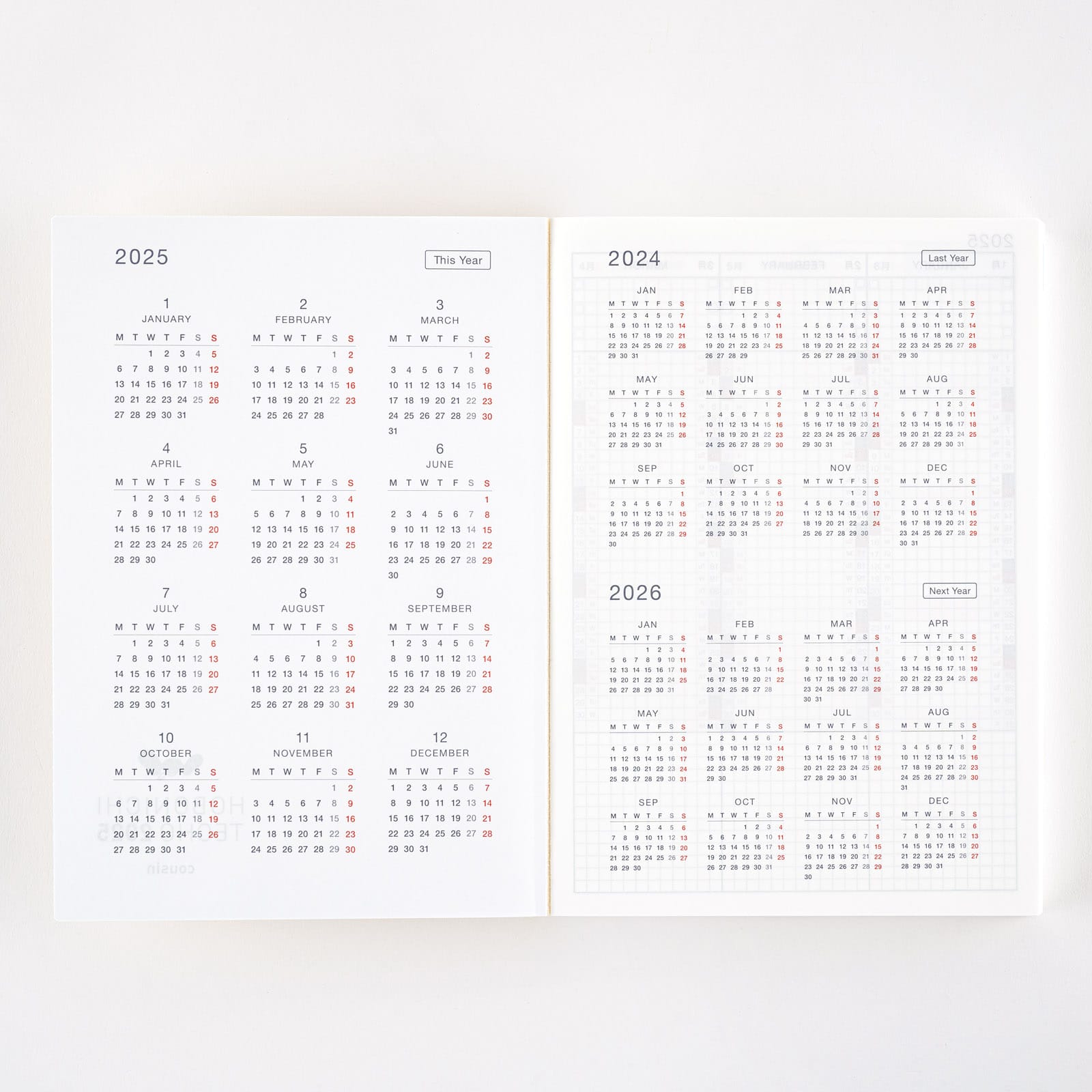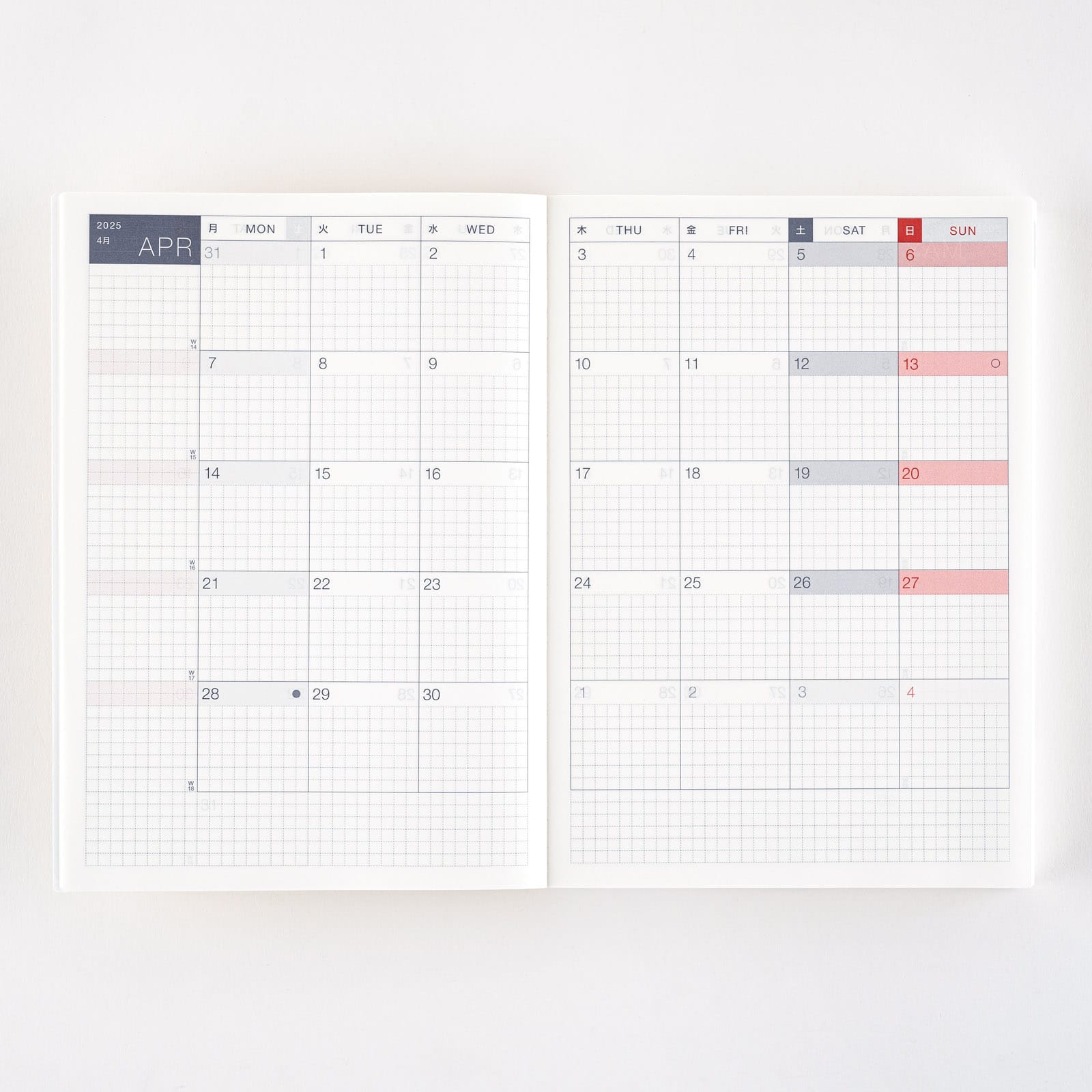*右ページに「ミニカレンダー」を掲載(月曜はじまり)。