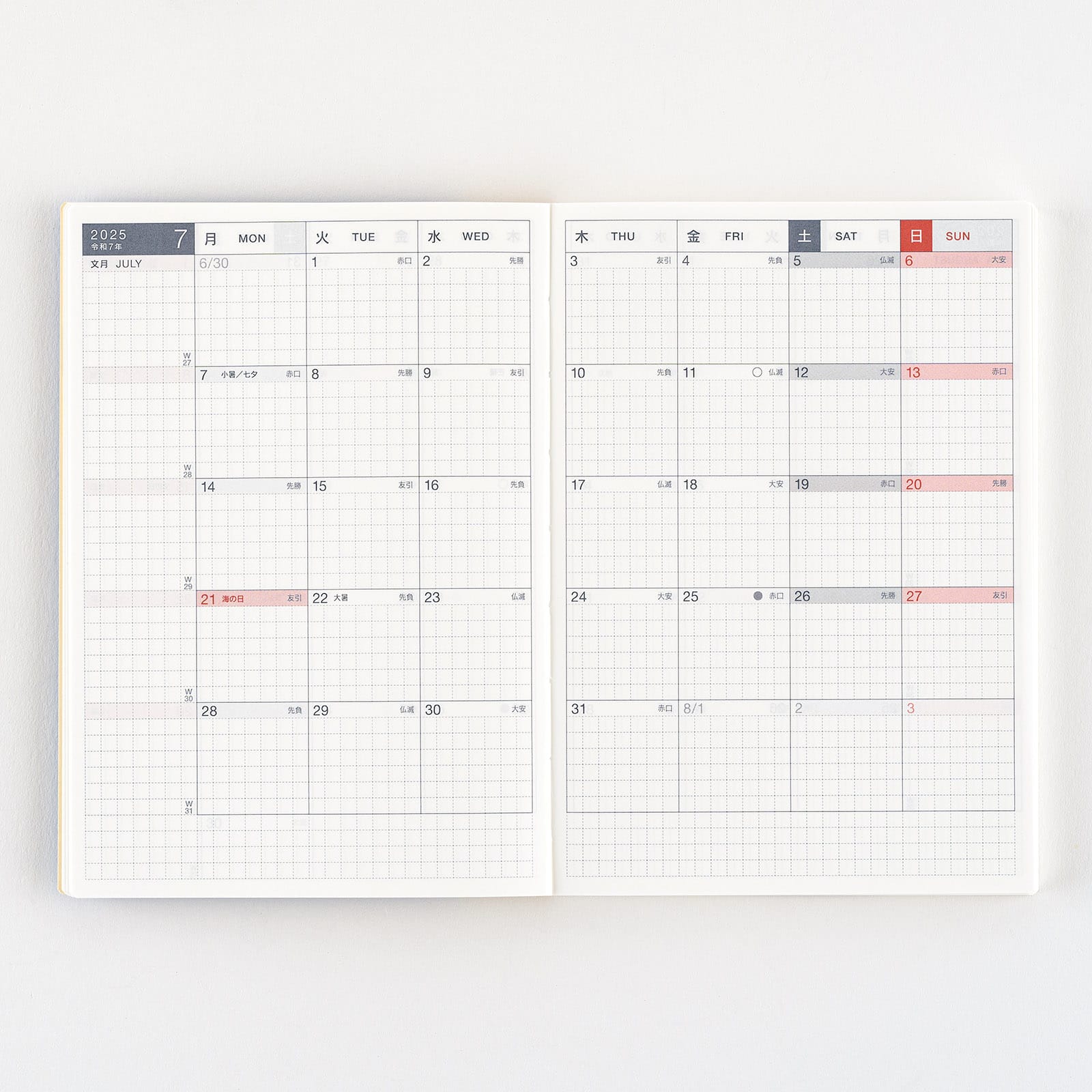 ■記載される内容:日番号/週番号(月間カレンダーに記載)/旧暦/六曜(大安、仏滅など)(月間カレンダーに記載)/二十四節気(立春、春分、夏至など)、雑節/祝日、記念日など(バレンタインデー、ひなまつり、母の日、父の日など)/月の満ち欠け(月間カレンダーに満月と新月のみ記載)