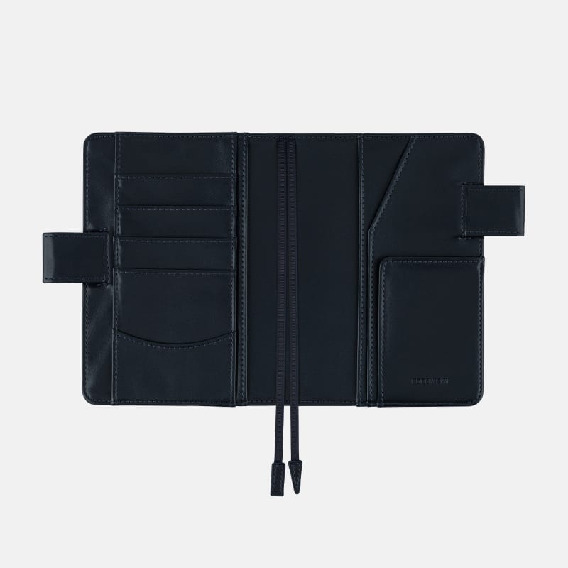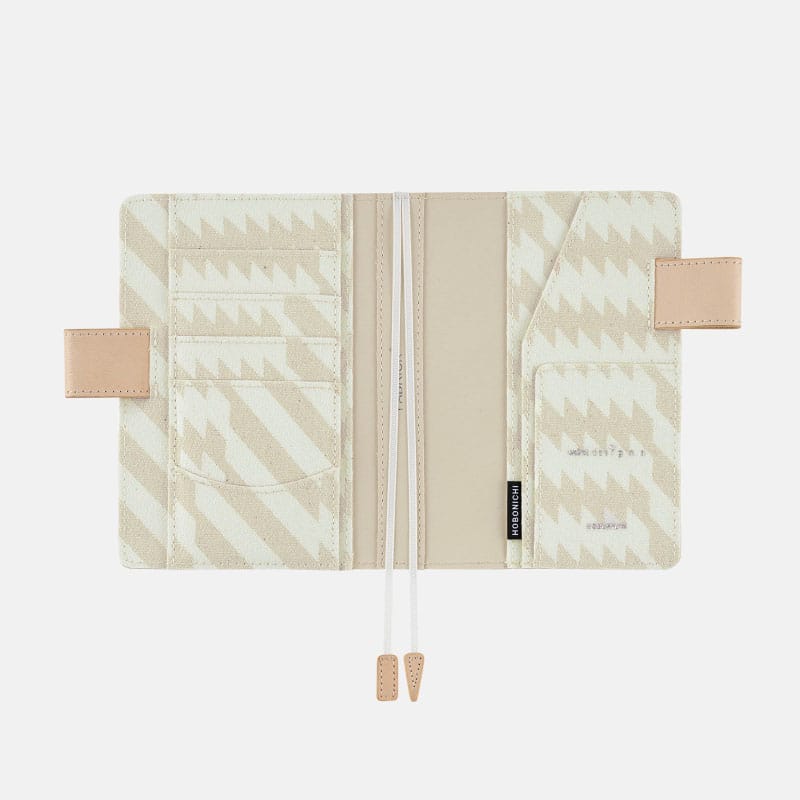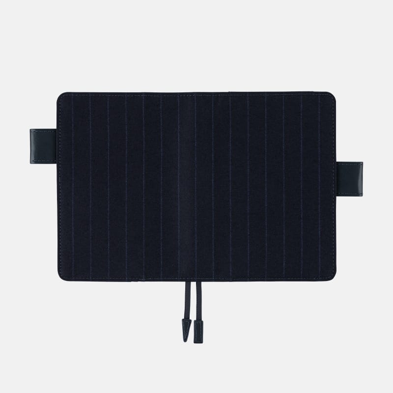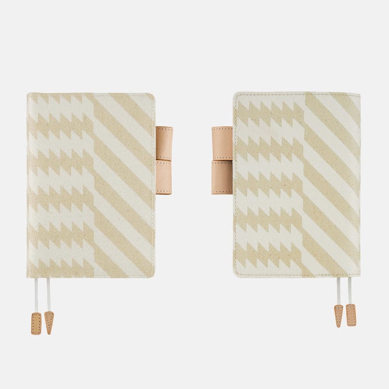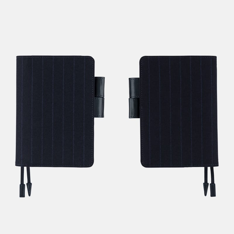 ・素材の特性上、カバーと手帳本体をセットする際、表紙や背表紙に負担がかかりやすくなっています。カバーに手帳本体をセットする際は、「カバーのつけかたとお手入れ」を参考に、少しずつ差し込んでください。また、黒い点が見られることがありますが、綿の生地特性としてあらかじめご了承ください。
