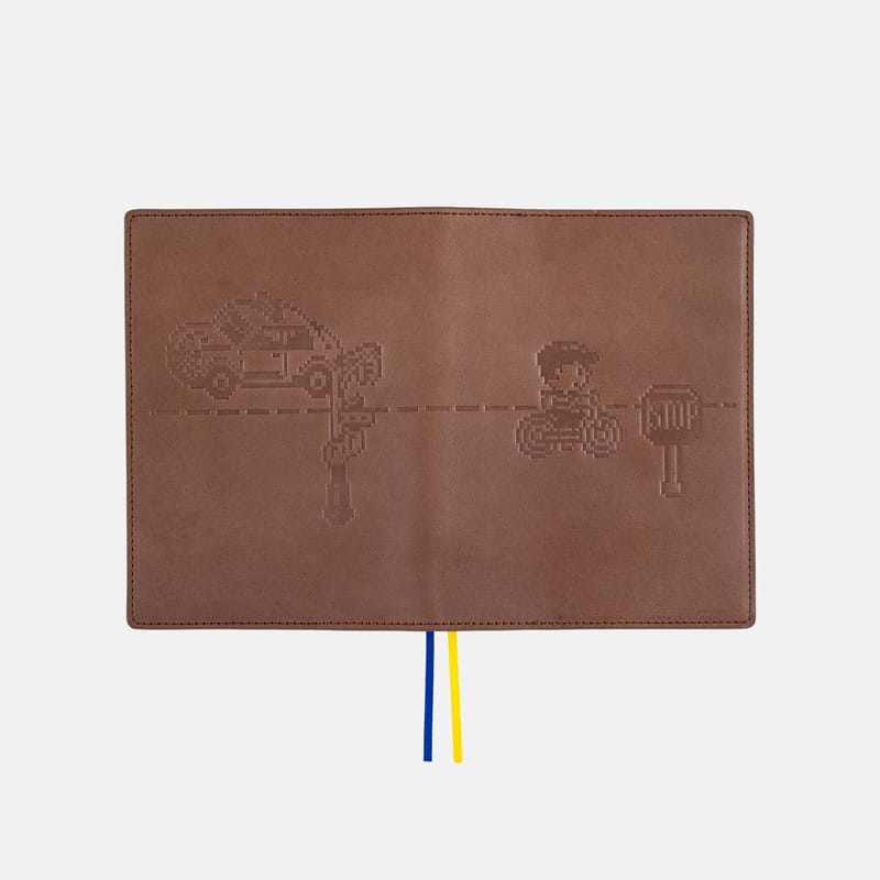 レザーの表面に型押しで表現したカバー。