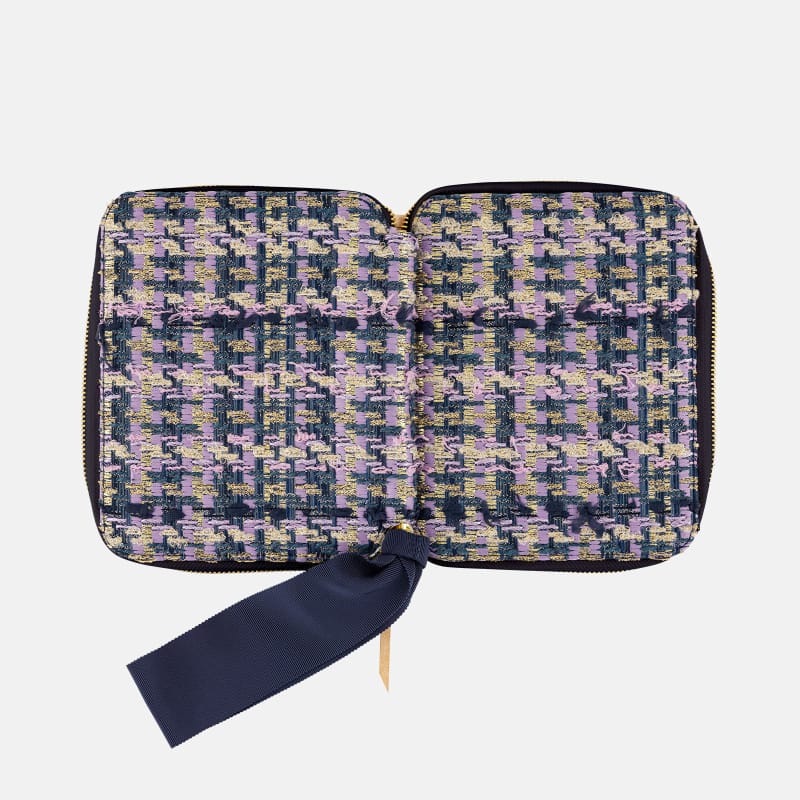 ・カバーの使いはじめは、ペンホルダー、またはバタフライストッパーの生地や革がかたいため、ペンが抜きさししづらくなっています。手で揉んでなじませていただくと抜きさししやすくなります。