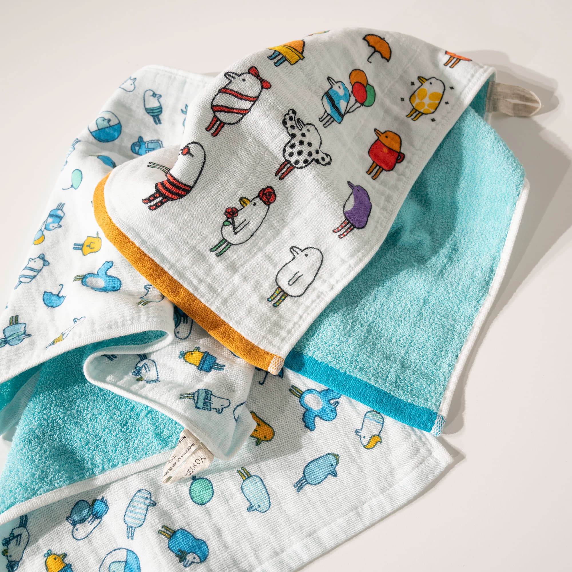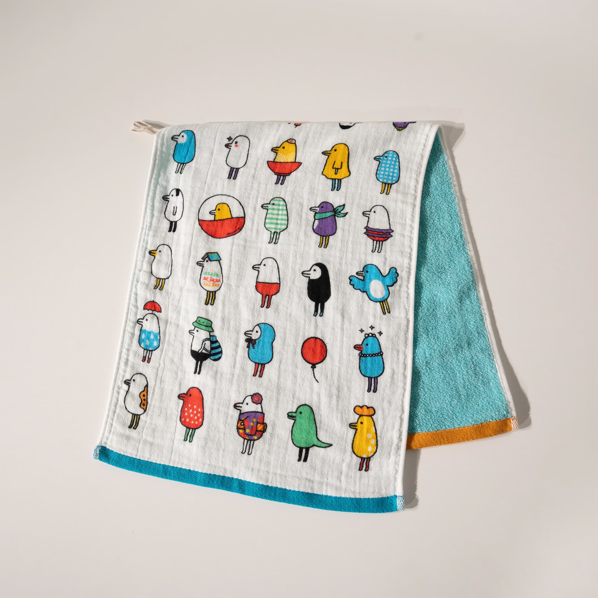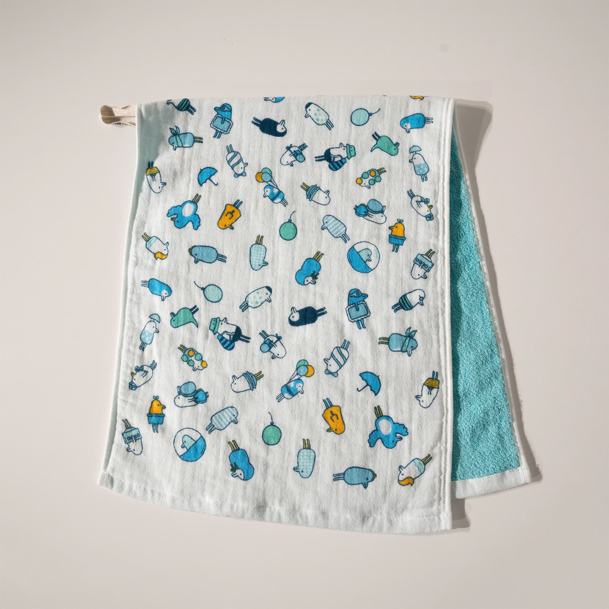 ・プリントのタオルは、使い始めに色落ちしたり、染料のニオイがすることがあります。白物と一緒に洗わないでください。