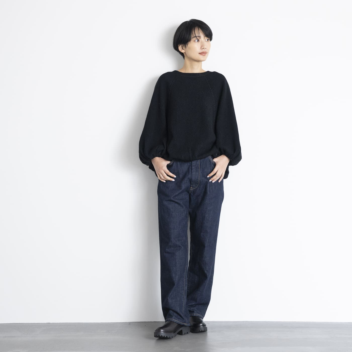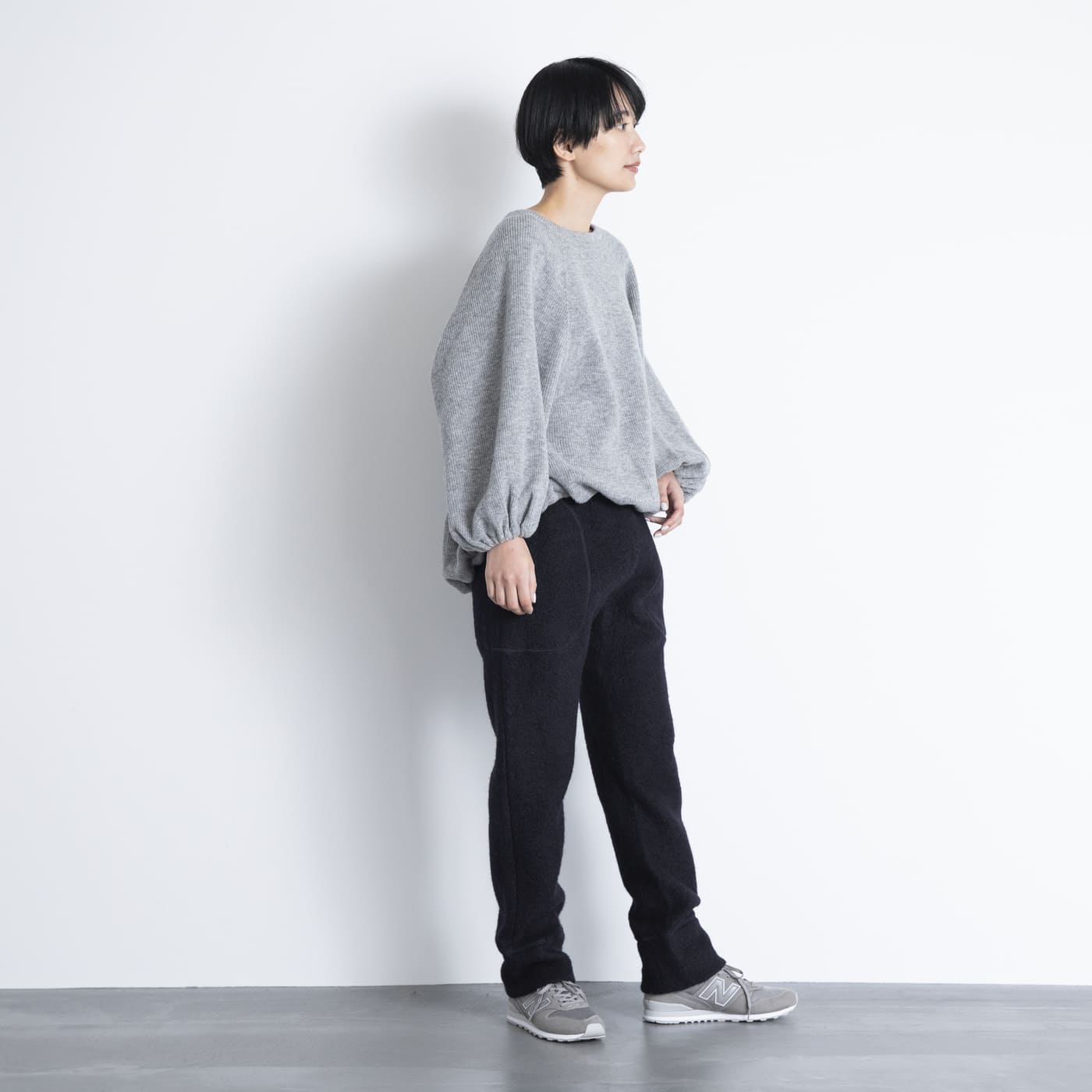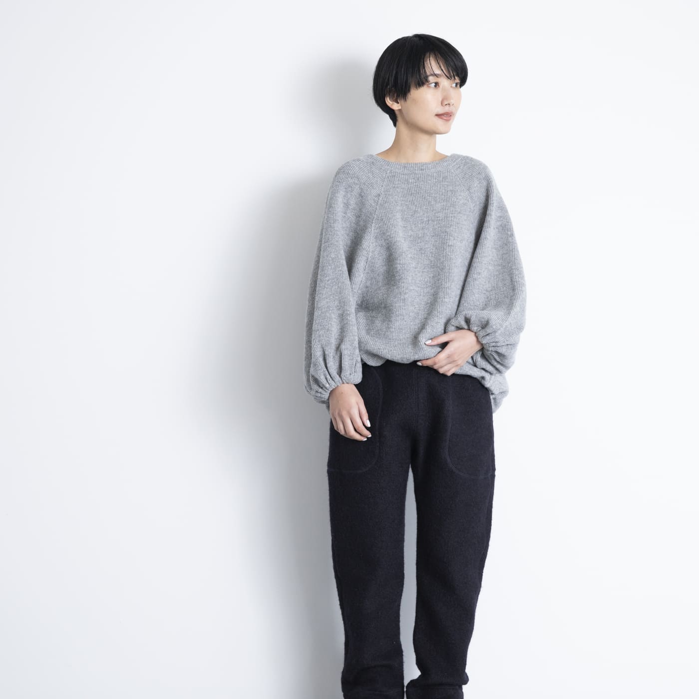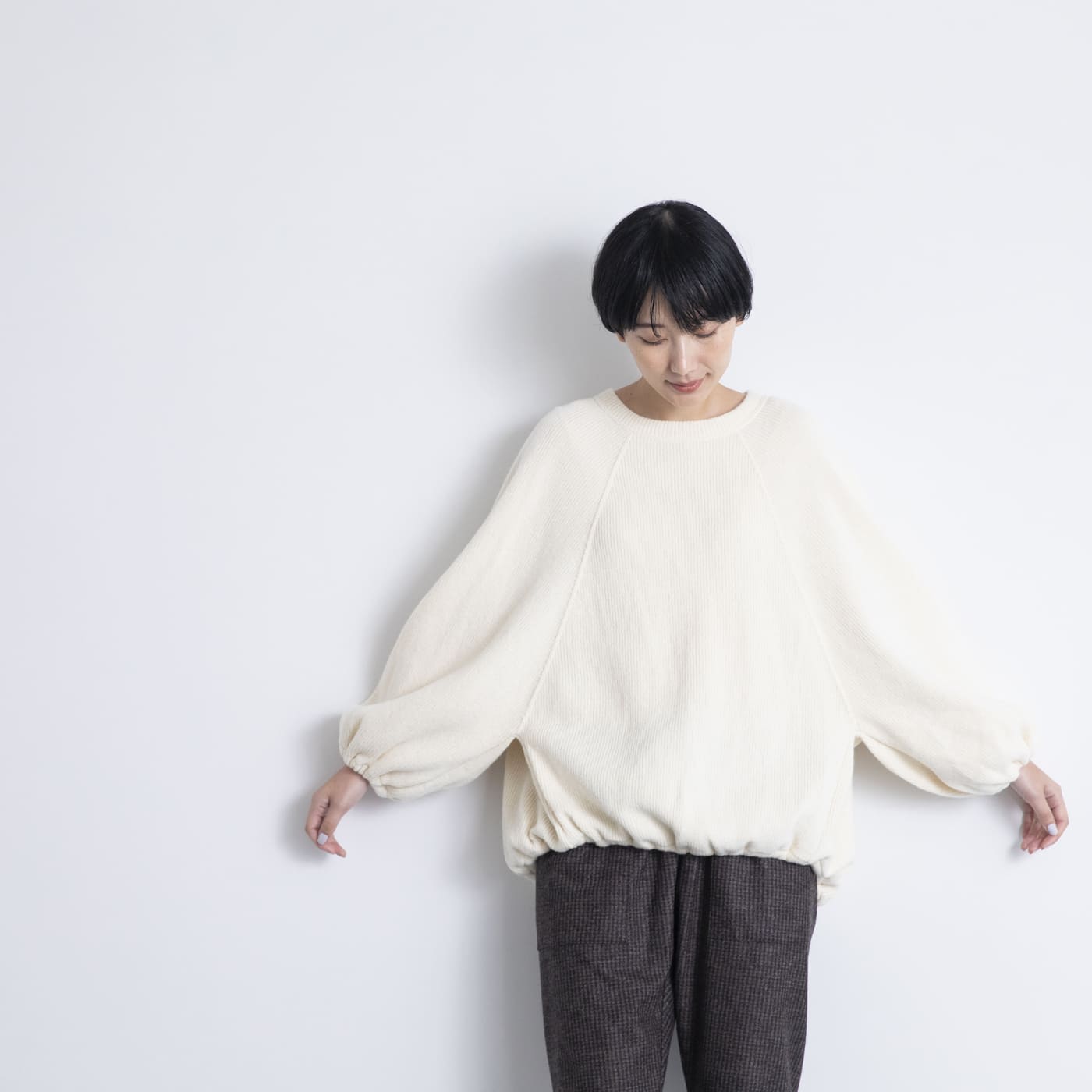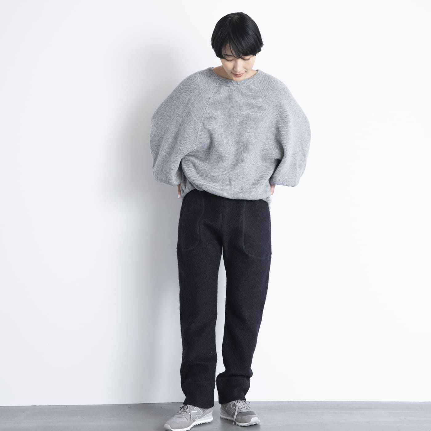 ラグラン線上のステッチや、リブ始末のクルーネック等、