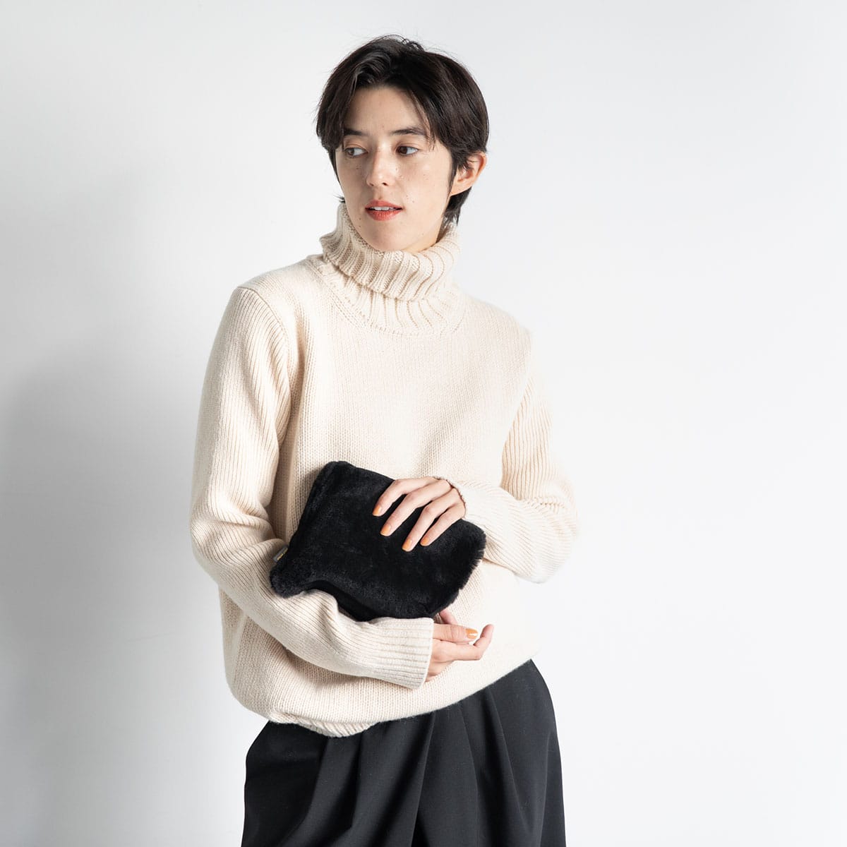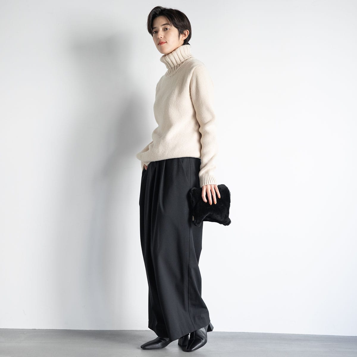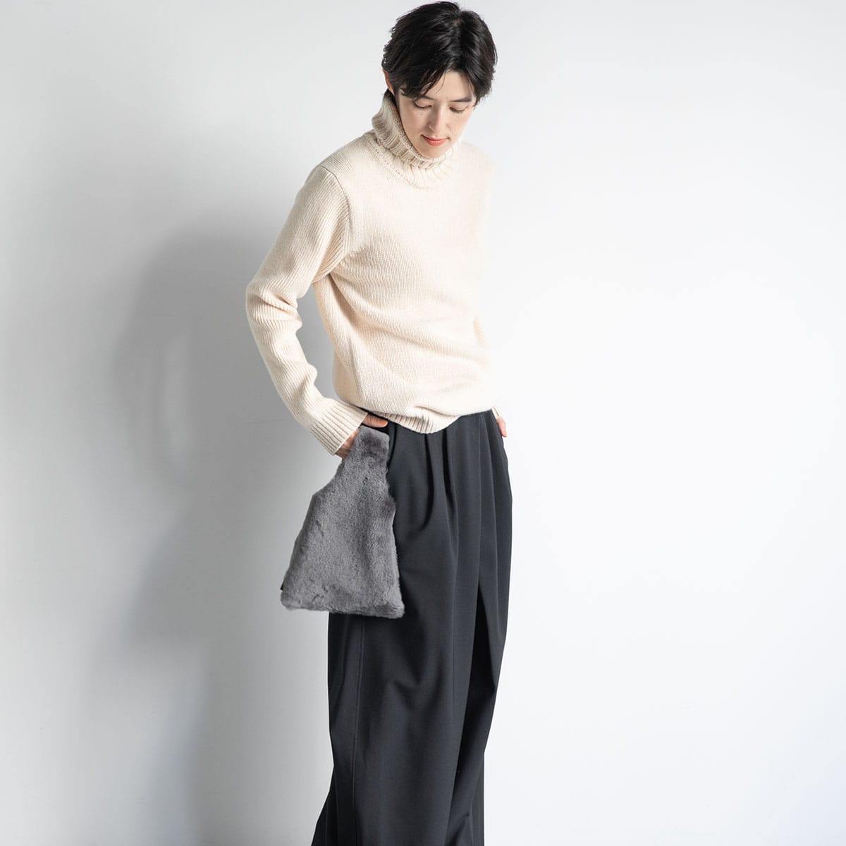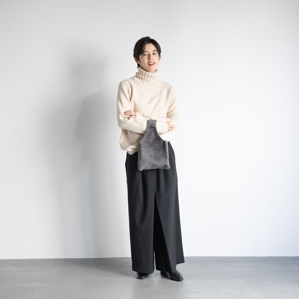 シープスキンを少しだけ見せるなど、