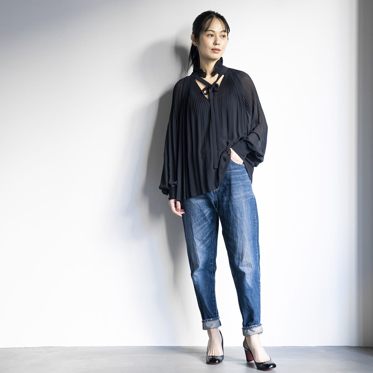 透け感のある生地はフェミニンなスタイルはもちろん