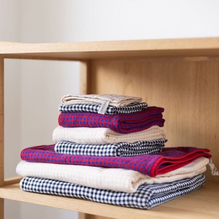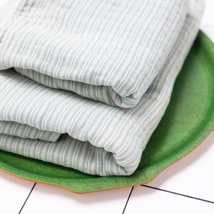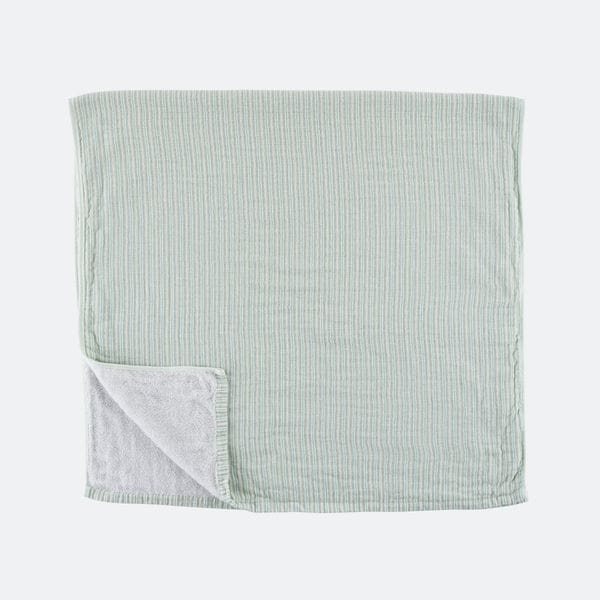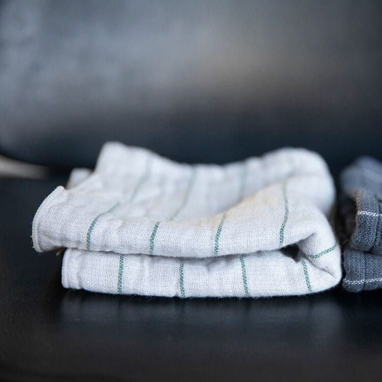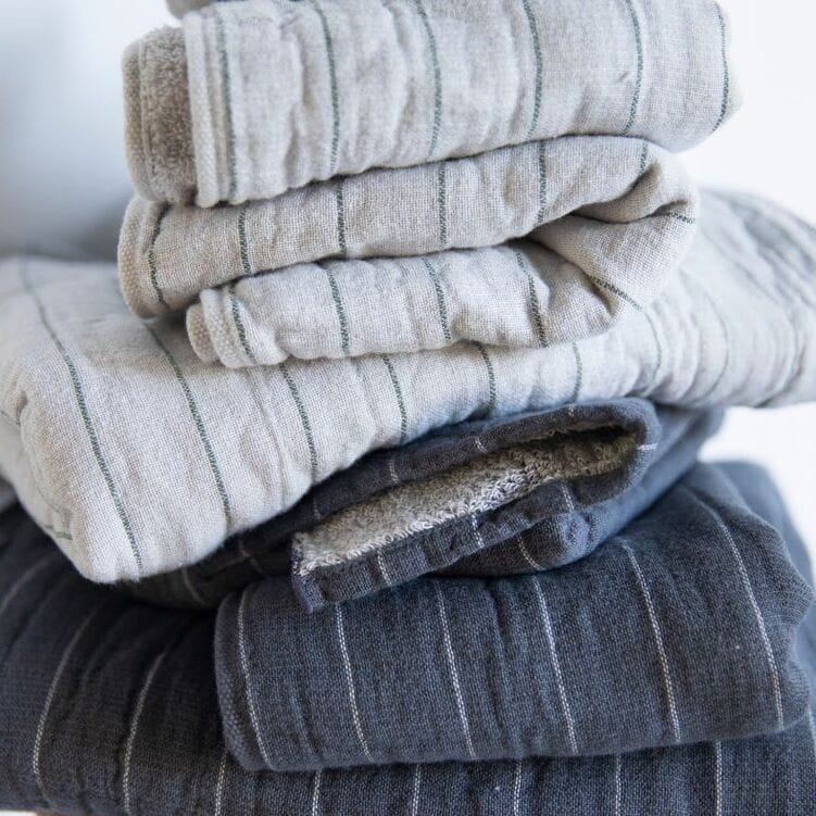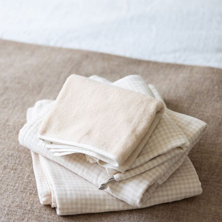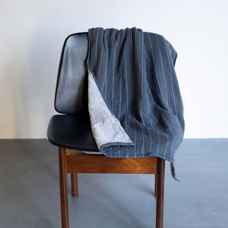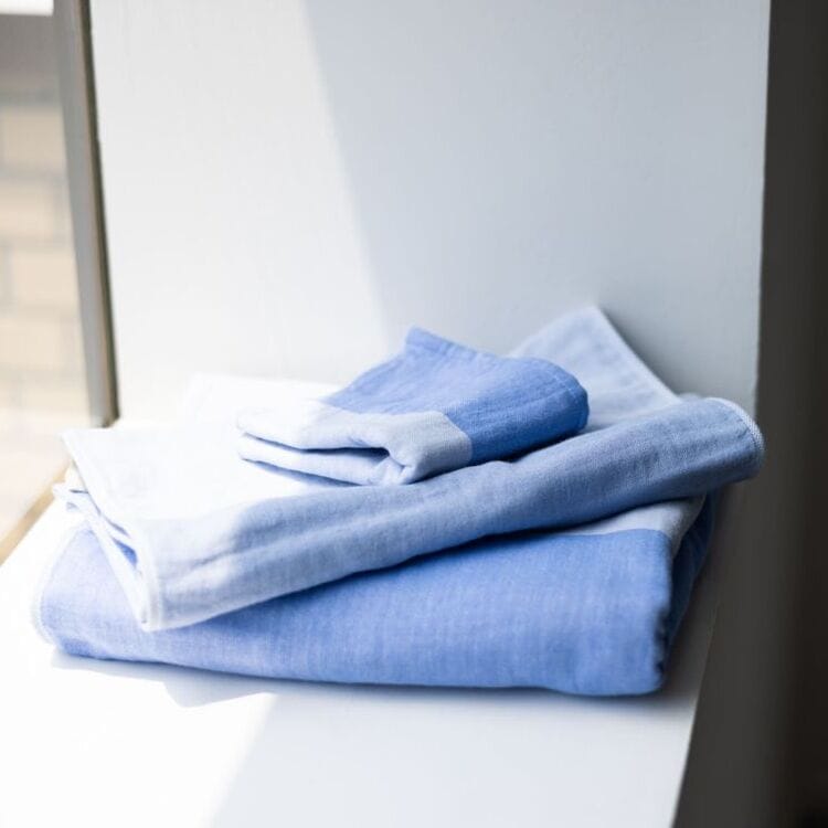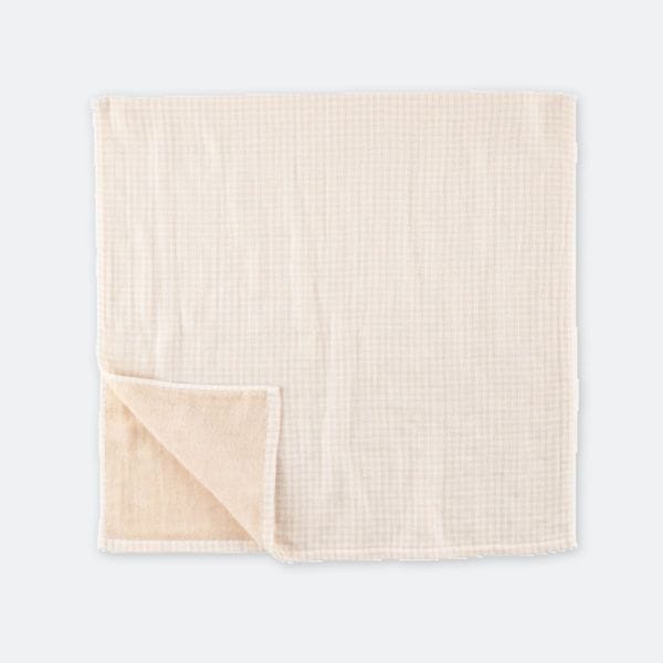 ・3重の織構造のため、両面パイルのタオルよりも薄くて軽いです。その3つの層を、接結糸とよばれる糸でつないでいるため、ガーゼ面には等間隔に小さなへこみがあります。