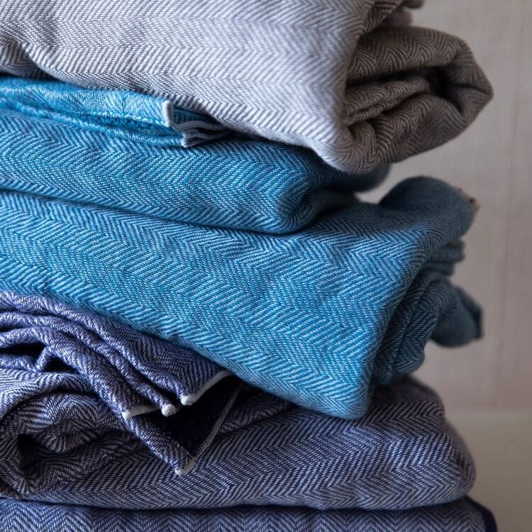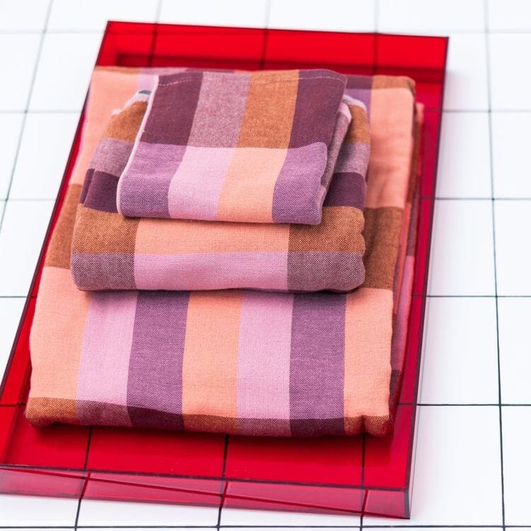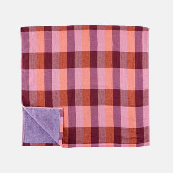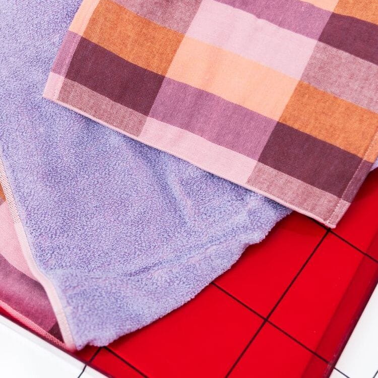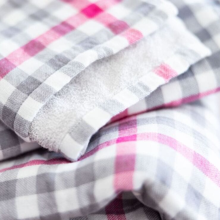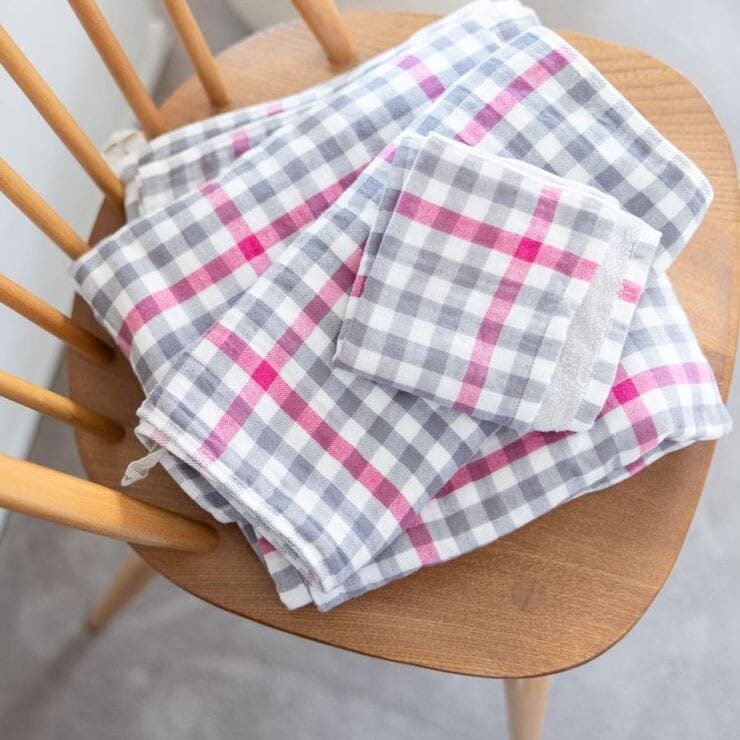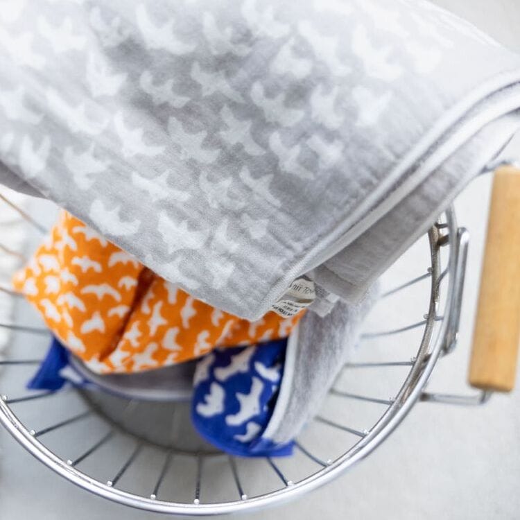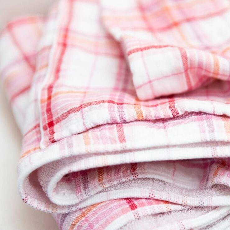 ・3重の織構造のため、両面パイルのタオルよりも薄くて軽いです。その3つの層を、接結糸とよばれる糸でつないでいるため、ガーゼ面には等間隔に小さなへこみがあります。