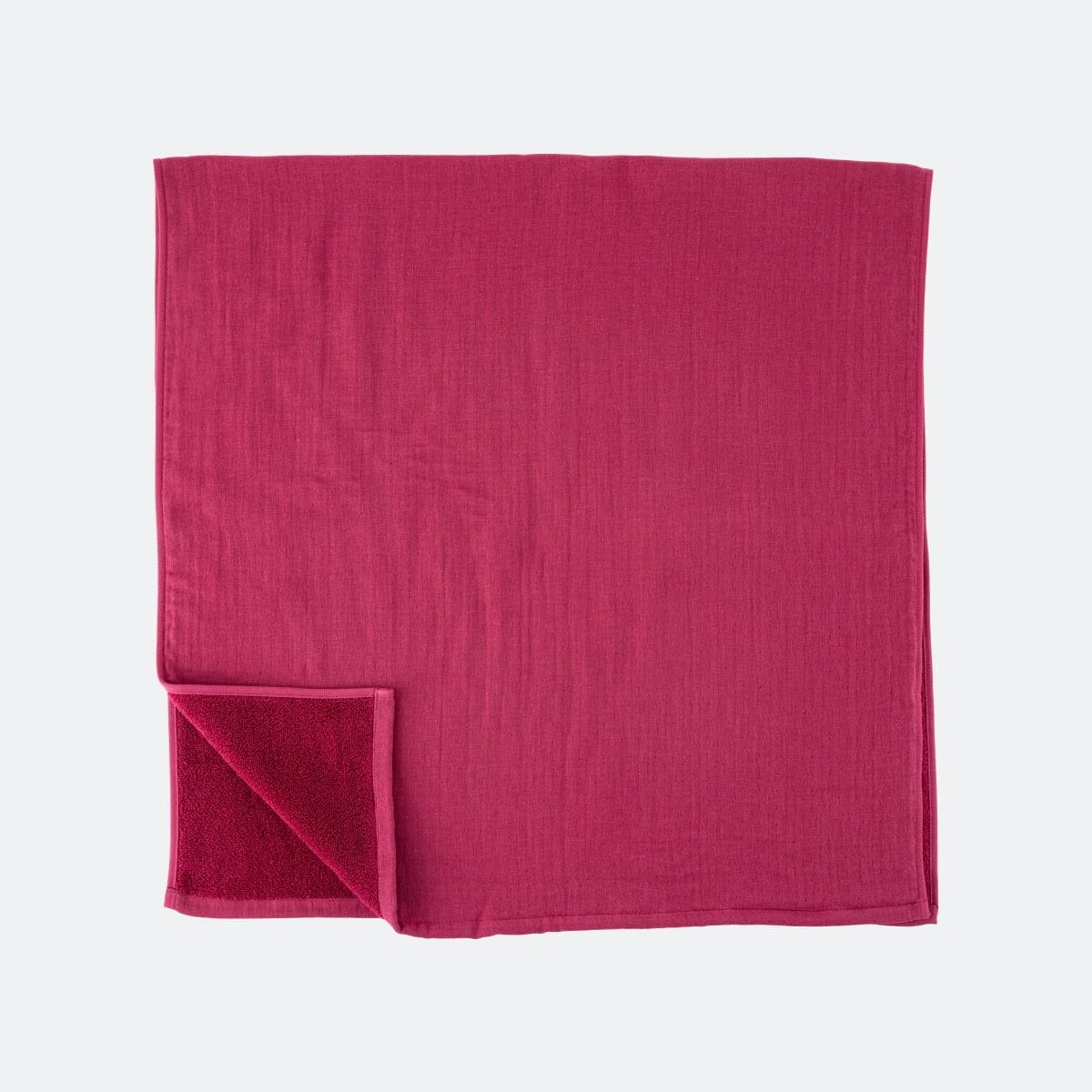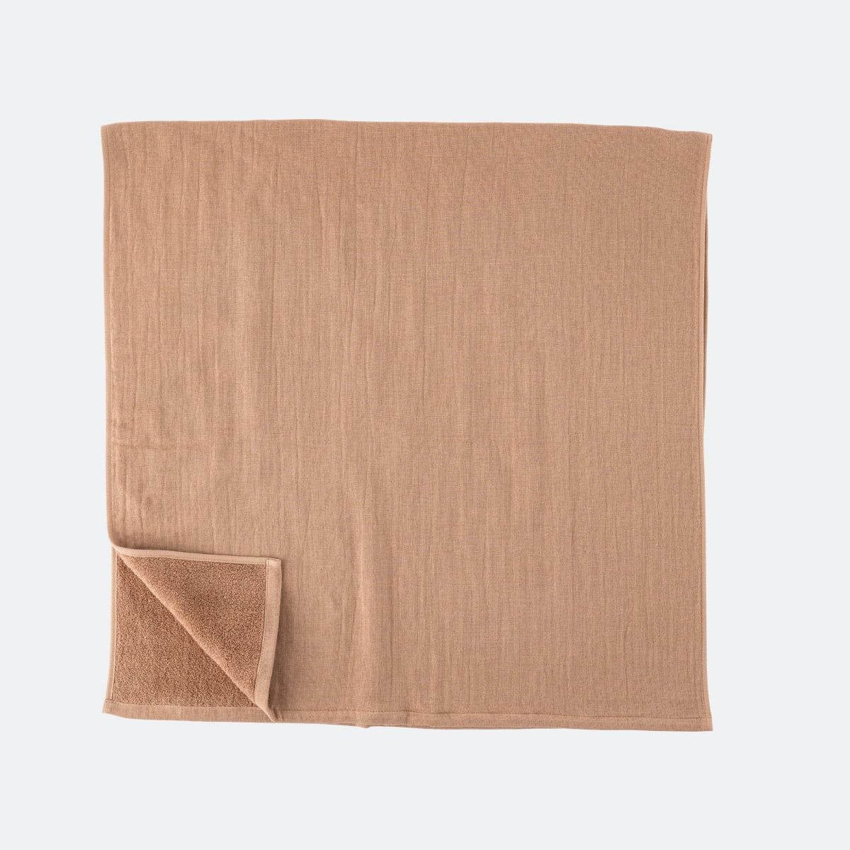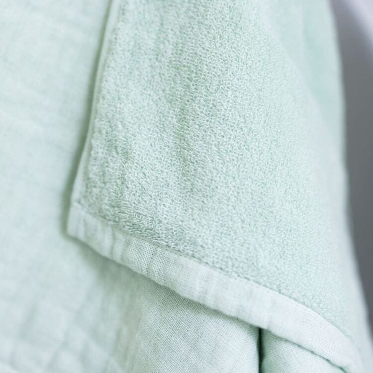 ・3重の織構造のため、両面パイルのタオルよりも薄くて軽いです。その3つの層を、接結糸とよばれる糸でつないでいるため、ガーゼ面には等間隔に小さなへこみがあります。