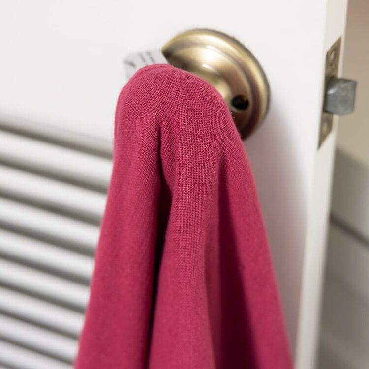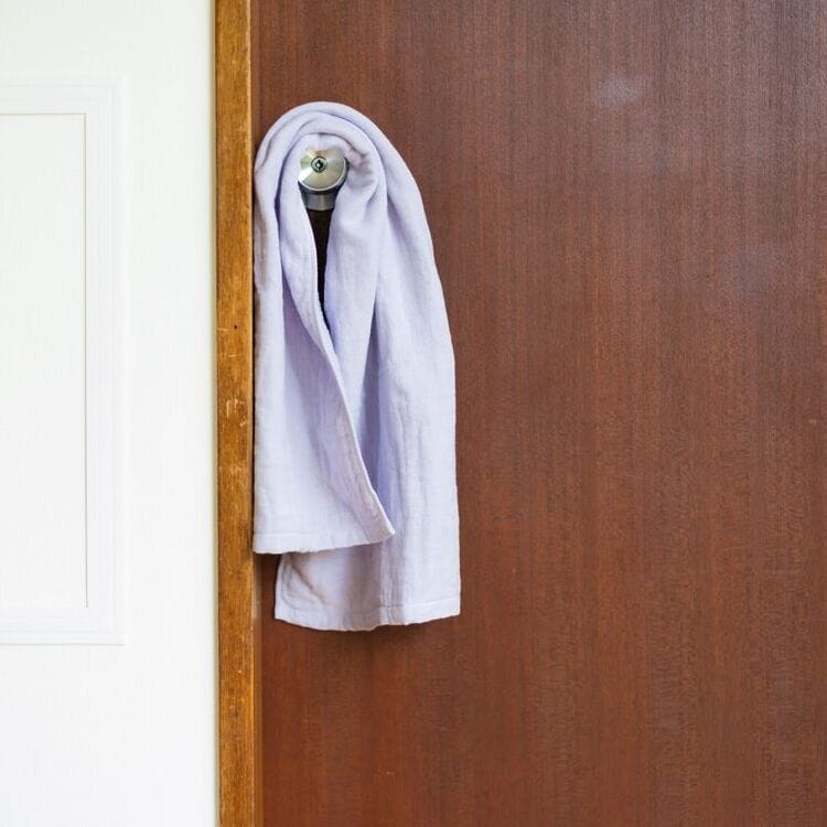 あわい紫色のタオル。晴れの日にも、