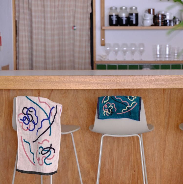 栗原さんのデザインは、クリーム色のガーゼ面に