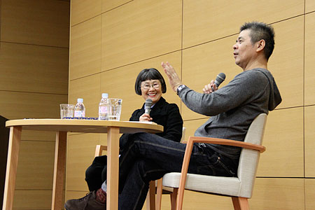 | 糸井 | 会場にあったもの以外にも 表現を山ほどなさってるけど、 やっぱりそのつど、 ここは誰かの隙を突いてこうしたんだとか、 ここはもうケンカになるのを承知でやったんだとか、 ここは言うことを聞いたふりして、 もっと過剰に言うことを聞くことによって 乗っけてったんだとか、 そのつど、格闘の痕が たぶんあるんだと思うんです。 ご自分でぜんぶそれはきっと 憶えてらっしゃるようなことだと思うんですけど。 |