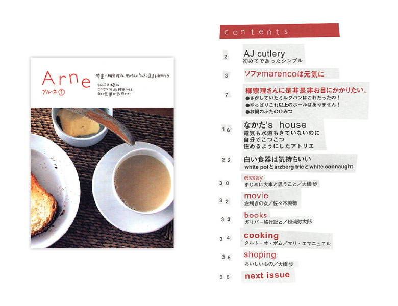 柳宗狸デザインのキッチン用品と食器で、別冊アルネをつくりました。