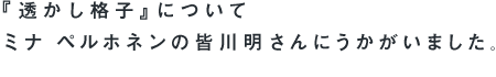| ミナ ペルホネン・皆川明さんによる、 描きおろしのオリジナルデザインです。 皆川さん自身の手描きの線で組まれた柄は、 かっこよくて、あたたかい雰囲気。 表に縦線、裏面に横線。 光に透かすと、味わいのある格子柄が見えてきます。 男性にも持ってもらうことを意識して、 つくられたそうですよ。 ※販売は終了しました。 |